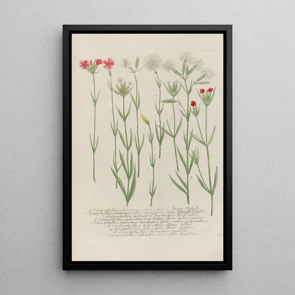 The art print of Phytanthoza iconographia Pl054 immerses us in a rich and colorful botanical universe. This piece, created by Johann Wilhelm Weinmann, stands out for its meticulous composition and vibrant colors. Every detail of the plants is carefully rendered, offering an atmosphere that is both scientific and poetic. The shades of green, pink, and yellow intertwine harmoniously, creating a sense of life and movement. The artist succeeds in capturing the very essence of nature, inviting the viewer to an attentive contemplation of vegetal beauty.