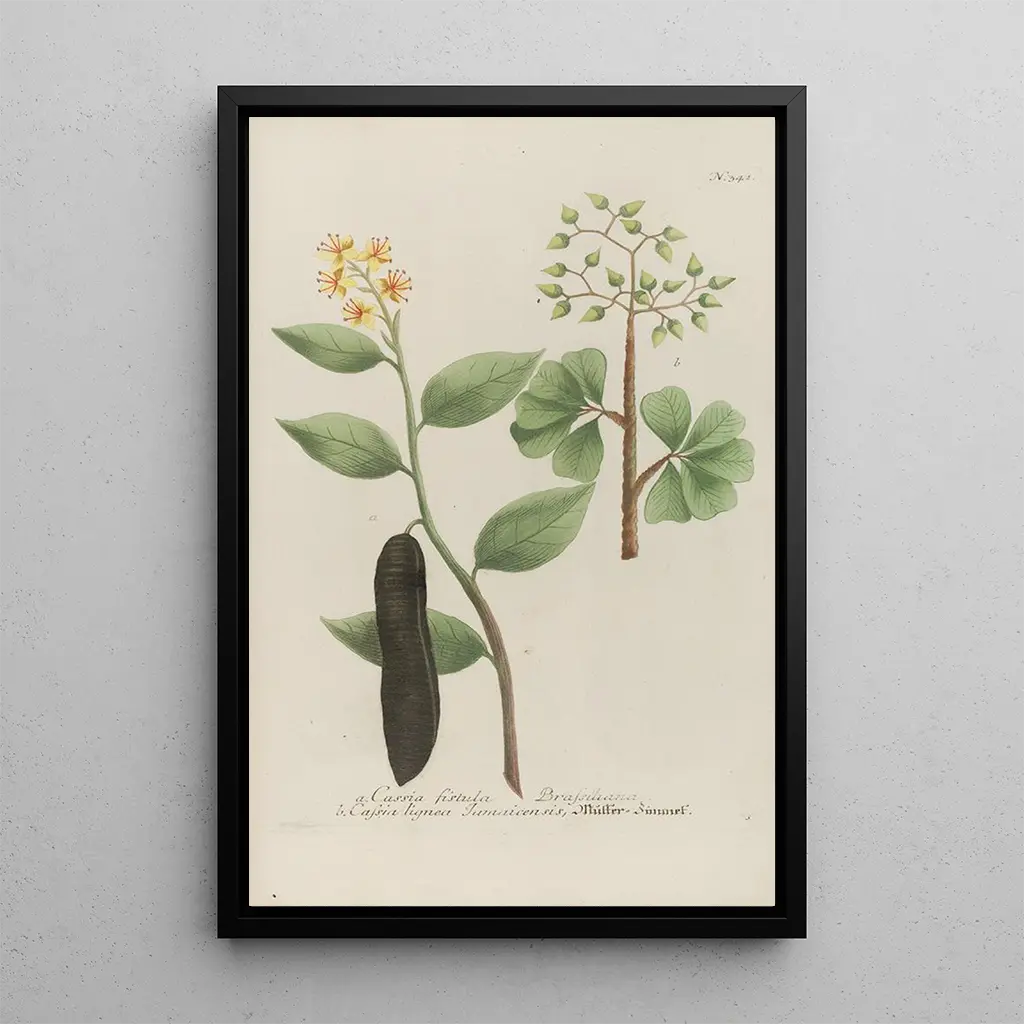 The art print of Phytanthoza iconographia Pl064 immerses us in a rich and colorful botanical universe. Johann Wilhelm Weinmann, through this work, captures the beauty of plants with remarkable precision. The vibrant hues and intricate details of the leaves and flowers evoke an atmosphere of serenity and contemplation. The engraving technique, combined with watercolor, brings each element to life, transforming this canvas into a true ode to nature. The piece invites the viewer to explore plant diversity, marvel at the complexity of shapes and colors.