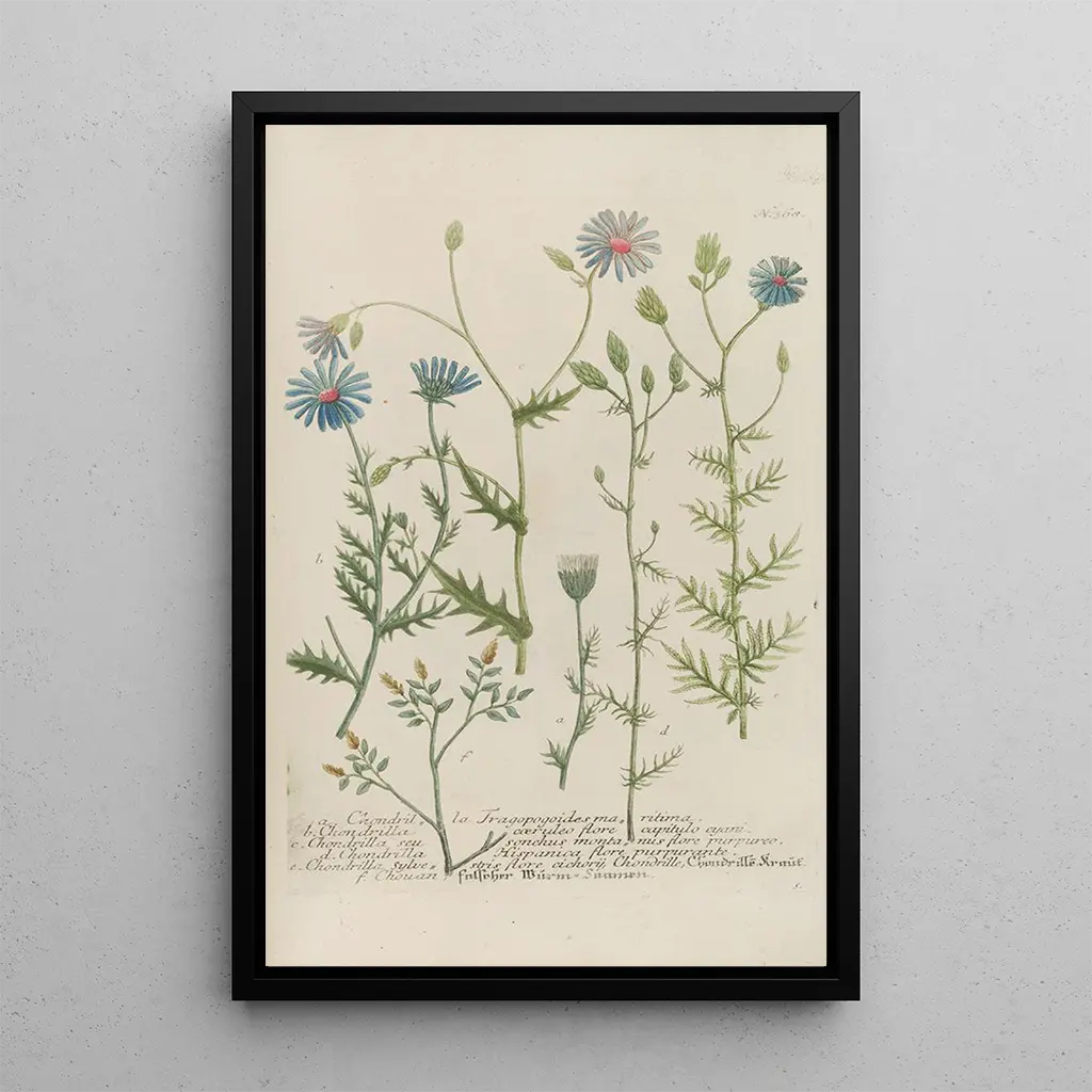 The art print of Phytanthoza iconographia Pl091 transports us into a world where each plant is illuminated with unmatched delicacy. The vibrant hues and exquisite details of the illustrations reveal the richness of flora, inviting a fascinating visual exploration. Johann Wilhelm Weinmann's engraving technique captures the beauty of shapes and textures, creating an atmosphere that is both scientific and artistic. This artwork is a true celebration of nature, a tribute to the plant diversity that surrounds us.