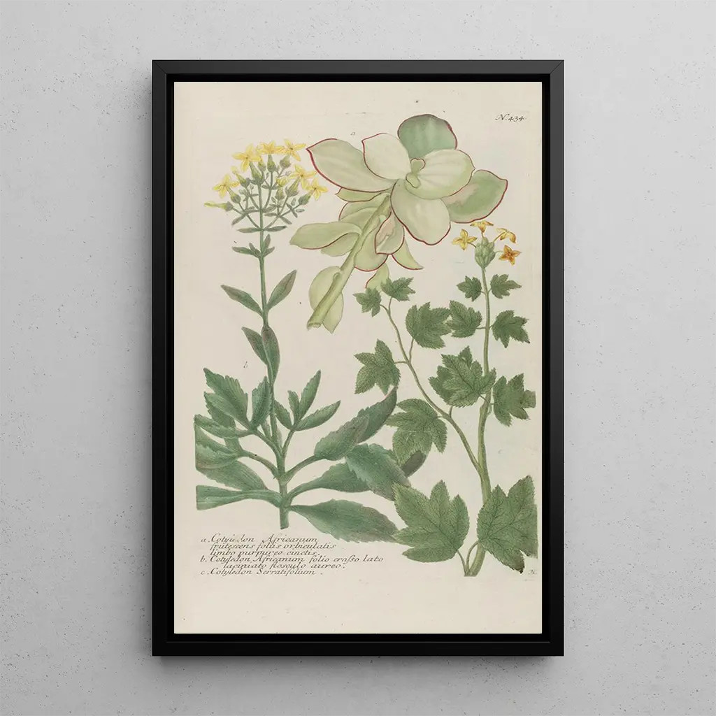 Phytanthoza iconographia Pl157: A Celebration of Biodiversity The art print of Phytanthoza iconographia Pl157 is a true tribute to the richness of nature. This piece, created with meticulous precision, highlights a variety of exotic plants, illustrating the beauty of forms and colors. The vibrant hues, ranging from bright greens to delicate pinks, create an atmosphere that is both soothing and stimulating. The engraving technique used by the artist offers depth and texture that captivate the eye, inviting prolonged contemplation. Every detail, every shadow, seems to tell a story, that of a lush and mysterious plant world. Johann Wilhelm Weinmann: A Pioneer of Botanical Illustration Johann Wilhelm Weinmann, botanist and illustrator of the 18th century, is recognized for his significant contribution to botanical illustration. Active during a period when science and art were closely intertwined, he captured the beauty of plants with scientific accuracy. Influenced by the botanical discoveries of his time, Weinmann traveled across Europe to gather specimens and knowledge. His work, Phytanthoza iconographia, is considered a reference in the field, combining aesthetics and scientific rigor. Through his illustrations, he contributed to the dissemination of botanical knowledge, making nature accessible to a wider audience. A decorative acquisition with multiple advantages The art print of Phytanthoza iconographia Pl157 is an ideal decorative piece to enhance your interior. Whether in a living room, office, or bedroom, this artwork adds a touch of freshness and elegance. Its printing quality guarantees fidelity to the colors and details of the original work, allowing you to enjoy the full splendor of nature at home. The aesthetic appeal of this canvas makes it a perfect choice for those wishing to create a serene and inspiring atmosphere. By incorporating this art print into your decor, you invite the beauty of biodiversity into your living space.