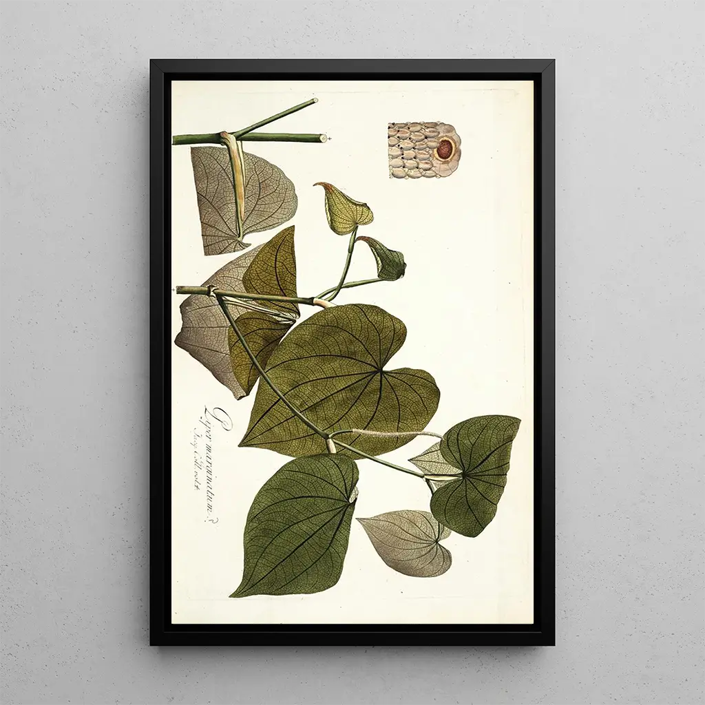 Piper marginatum : an ode to tropical nature The art print of Piper marginatum, created by Nikolaus Joseph Freiherr von Jacquin, immerses us in a lush botanical universe. This canvas, rich in detail, highlights the delicate leaves and vibrant shades of green that characterize this plant. The watercolor technique, executed with mastery, imparts a sense of lightness to the overall piece, while the harmonious composition invites calming contemplation. The atmosphere emanating from this artwork is both lively and serene, capturing the very essence of tropical flora. Nikolaus Joseph Freiherr von Jacquin: a pioneer of artistic botany Nikolaus Joseph Freiherr von Jacquin, an 18th-century botanist and artist, played a crucial role in the scientific illustration of plants. His travels in South America profoundly influenced his work, allowing him to discover a multitude of plant species. As a member of the Academy of Sciences, he contributed to botanical knowledge of his time, blending science and art. His style, characterized by meticulous precision and aesthetic sensitivity, has left a lasting mark on the history of botanical illustration, making him an essential figure in this field. A decorative acquisition with multiple advantages The art print of Piper marginatum is an ideal decorative piece to enhance your interior, whether in a living room, office, or bedroom. Its print quality and fidelity to the original colors make it an attractive choice for botanical and art enthusiasts. The artwork adds a touch of freshness and serenity to any space, while also sparking interest and curiosity. Choosing this piece of art is opting for a decoration that combines aesthetics and culture, while celebrating the beauty of nature.