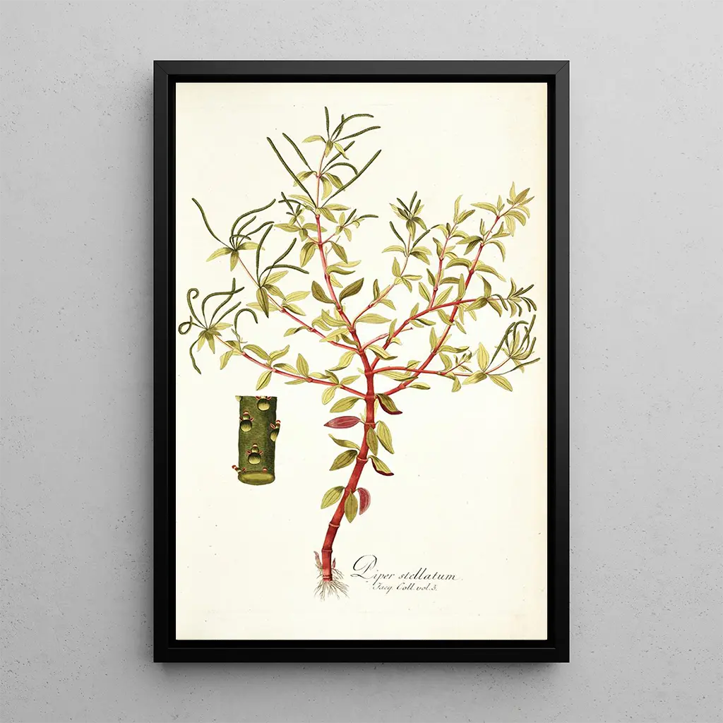 The art print of Piper stellatum makes an ideal decorative piece for various spaces, whether in a living room, office, or bedroom. Its print quality and fidelity to the original details make it an attractive choice for those who appreciate botanical art. By incorporating this artwork into your decor, you add a touch of elegance and serenity to your interior. The aesthetic appeal of this canvas lies not only in its visual beauty but also in the richness of its story, making each viewing an invitation to explore the wonders of nature.