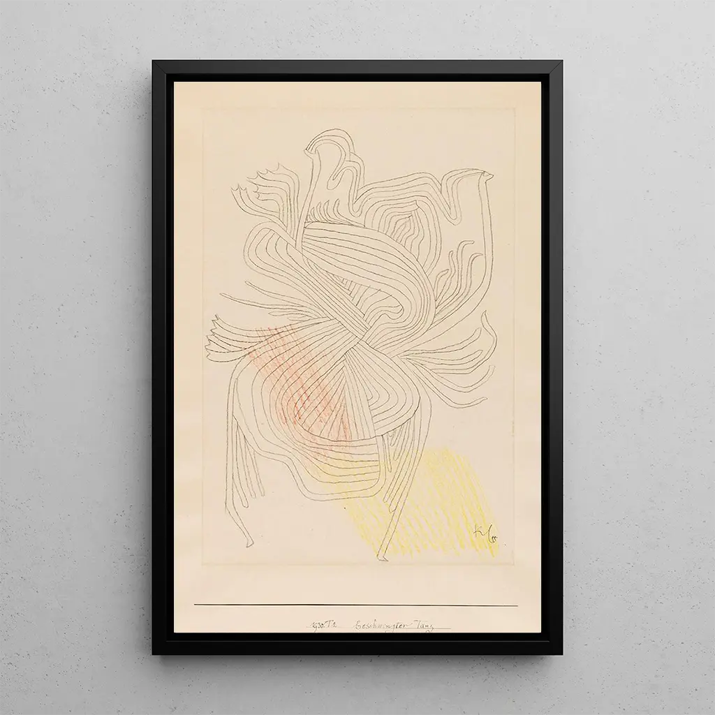 "Danse enjouée" by Paul Klee is a vibrant art print that captures the very essence of joy. The stylized figures, with rounded and colorful shapes, seem to come alive in a festive choreography, evoking a ballet of colors and movements. Klee's technique, which blends watercolor and pastel, creates a light and playful atmosphere, where each shade of color contributes to the energy of the composition. This art print invites celebration and escape, transporting the viewer to a world where dance becomes a metaphor for life. Paul Klee: a pioneer of modern art Paul Klee, born in 1879, is one of the most influential artists of the 20th century, recognized for his innovative approach to color and form. A member of the Bauhaus, he explored the interactions between art and music, seeking to translate complex emotions through simple shapes. "Danse enjouée" perfectly illustrates his unique style, blending abstraction and figuration, and demonstrates his interest in movement and expression. Klee established himself as a master of modern art, leaving a lasting legacy that continues to inspire. A decorative art print with multiple advantages The reproduction of "Danse enjouée" is an ideal choice for those who wish to add a touch of dynamism to their interior decoration. Whether in a living room, a playroom, or a creative space, this art print catches the eye and sparks enthusiasm. Its printing quality guarantees remarkable fidelity to the original artwork, while offering an explosion of colors that will brighten any wall. By incorporating this art print into your space, you add not only a piece of art but also a source of inspiration and joy in everyday life.