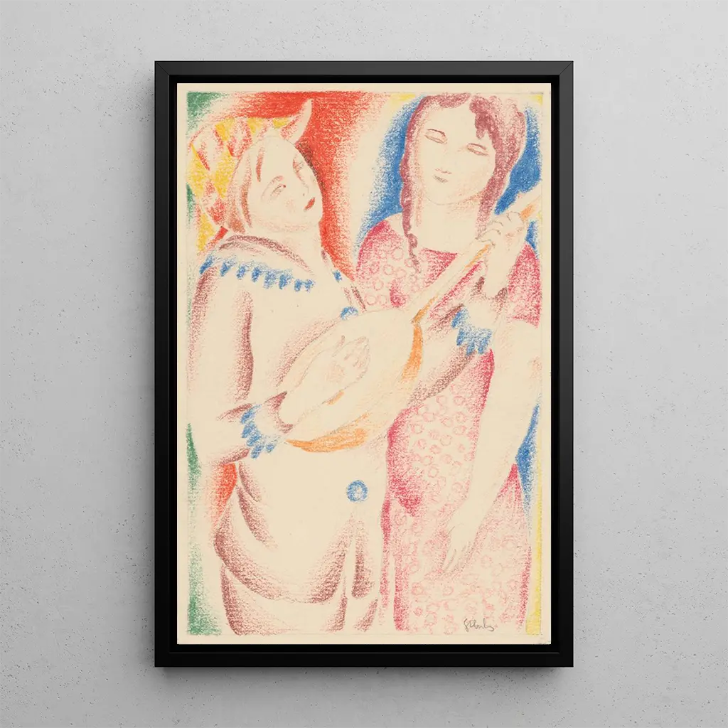 Playing the Mandolin: A Mesmerizing Visual Melody In Playing the Mandolin, Mikuláš Galanda captures the essence of a musical moment imbued with poetry. The vibrant colors and dynamic shapes evoke a lively scene where music seems almost tangible. The composition, centered on the musician, draws the eye and creates an emotional connection with the viewer. The warm nuances and play of light add an almost tactile dimension to the artwork, paying tribute to the art of performance. Galanda succeeds in immortalizing the fleeting instant of a melody, transforming the canvas into a true ode to music. Mikuláš Galanda: The artist at the crossroads of influences Mikuláš Galanda, born in 1895, is recognized for his role in the evolution of modern art in Slovakia. His artistic training, marked by diverse influences ranging from cubism to expressionism, shaped his unique style. Throughout his career, he explored various themes, but music and Slovak culture occupy a central place in his work. Galanda managed to create a visual language that transcends borders, paying homage to his roots while engaging in a broader artistic dialogue. His impact on the Slovak art scene is undeniable, and his works continue to inspire. A decorative art print with multiple virtues The art print of Playing the Mandolin is an ideal choice for those wishing to add an artistic touch to their interior. Whether in a living room, music room, or office, this canvas brings a warm and welcoming atmosphere. The quality of the print ensures remarkable fidelity to the details and colors of the original artwork, allowing you to enjoy Galanda’s vibrant energy. By incorporating this art print into your decor, you create a space that celebrates the beauty of music and art, while offering an invitation to contemplation and escape.