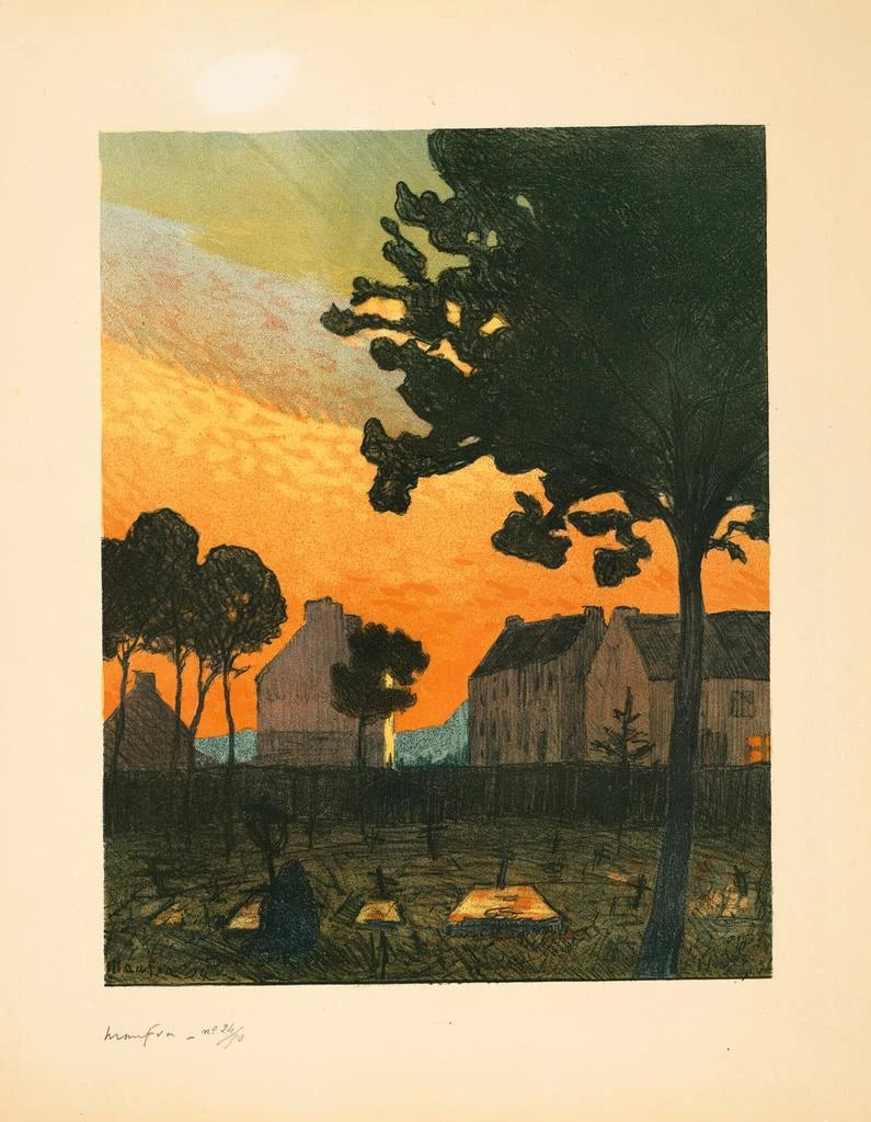 Maxime Maufra, French painter of the early XXth century, presents us with 'Le cimetière', a work that evokes serenity and reflection. Through expressive brushstrokes and a nuanced color palette, Maufra manages to capture the peaceful atmosphere of this space. This depiction of the cemetery, often perceived as a place of sadness, becomes here a symbol of memory and beauty. Maufra's art, which combines impressionist tradition with personal sensitivity, finds a resonance in our modern interiors, where we seek to create spaces for contemplation. The art prints of 'Le cimetière' bring a touch of serenity and introspection to any living space. Discover this artwork on Artem Legrand.