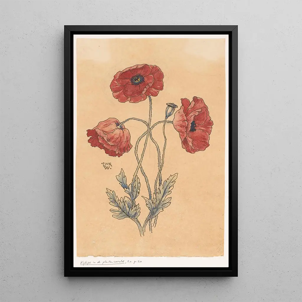 The art print "Coquelicots" by Willem Wenckebach immerses us in a field of dazzling flowers, where poppies dance in the gentle breeze. The shades of red, orange, and green blend harmoniously, creating an atmosphere that is both joyful and soothing. The artist's technique, which combines delicate brushstrokes with bolder touches, brings each petal to life, making the softness of the spring air almost tangible. The piece invites serene contemplation, where one can almost hear the whisper of nature.