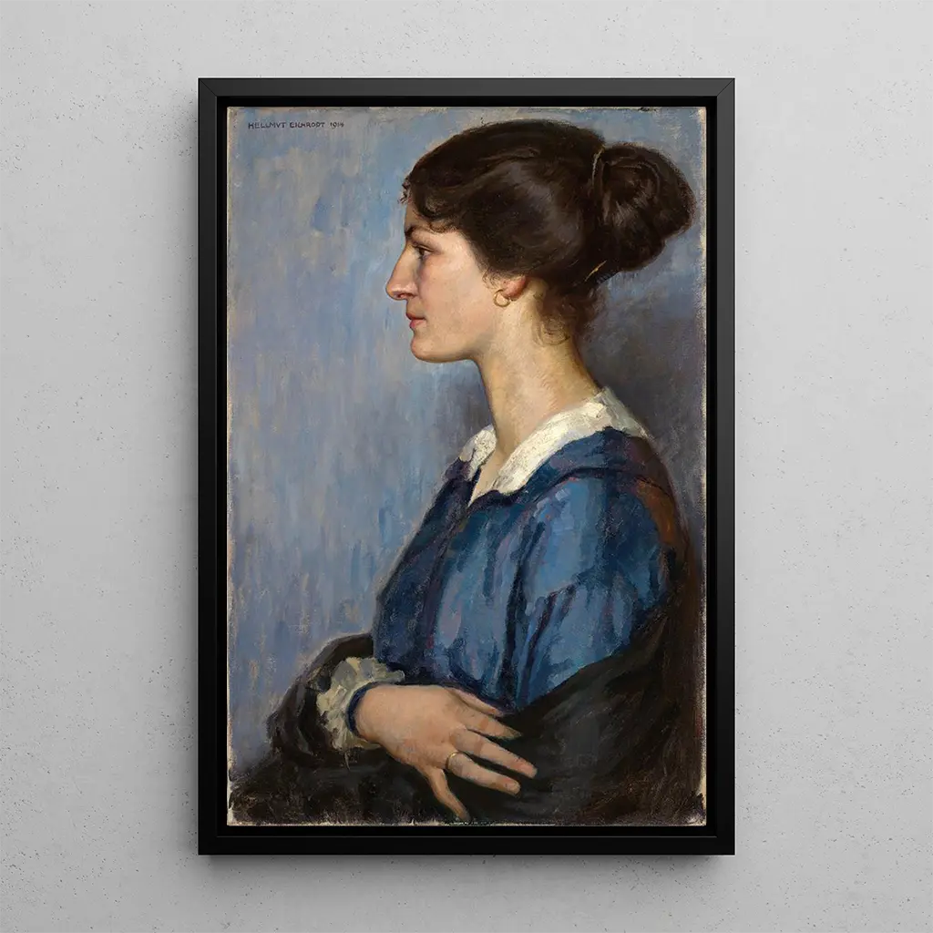 Portrait of a woman in profile facing left: a timeless elegance The art print "Portrait of a woman in profile facing left" by Hellmut Eichrodt captures delicate beauty through a harmonious composition. The woman, depicted realistically, is enveloped in soft tones that evoke a serene atmosphere. The shades of blue and pink blend subtly, creating a soothing contrast that draws the eye. The artist's technique, which combines realism with an impressionist touch, allows the viewer to feel the depth of emotions. This portrait, both intimate and universal, invites contemplation and admiration of feminine grace. Hellmut Eichrodt: a master of the 20th-century portrait Hellmut Eichrodt, a German painter active in the 20th century, is renowned for his portraits that capture the essence of his subjects. Influenced by the expressionist movement, he developed a unique style that blends realism and sensitivity. Eichrodt studied at the Berlin Academy of Fine Arts, where he was exposed to various techniques and styles, enriching his artistic palette. His work is distinguished by meticulous attention to detail and an ability to convey deep emotions, making him an essential artist of his era. A decorative art print with multiple virtues The reproduction of the "Portrait of a woman in profile facing left" is a decorative piece that fits perfectly into any interior, whether a living room, office, or bedroom. Its printing quality guarantees remarkable fidelity to the colors and details of the original artwork, adding a touch of elegance to your decor. This art print is not only an aesthetic element but also an invitation to reflect on the beauty and complexity of human nature. Its timeless appeal makes it an ideal choice to enrich your living space.
