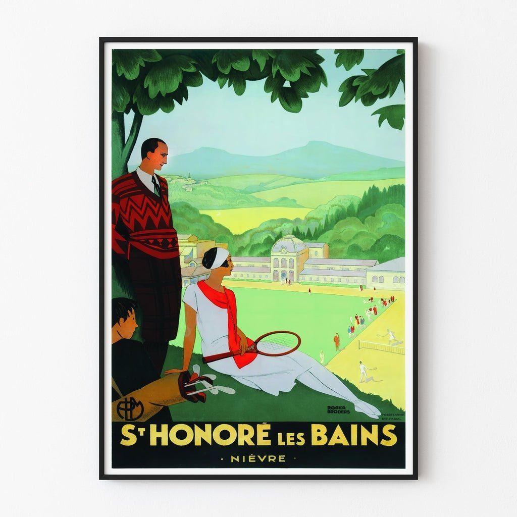 Let yourself be carried away by the elegance and charm of St-Honoré-les-Bains thanks to this magnificent vintage poster signed by Roger Broders. Depicting a peaceful and refined scene in the famous thermal spa of Nièvre, this artwork captures the essence of relaxation and well-being. Perfect for those who appreciate retro art, this poster will bring a touch of sophistication and history to your interior.