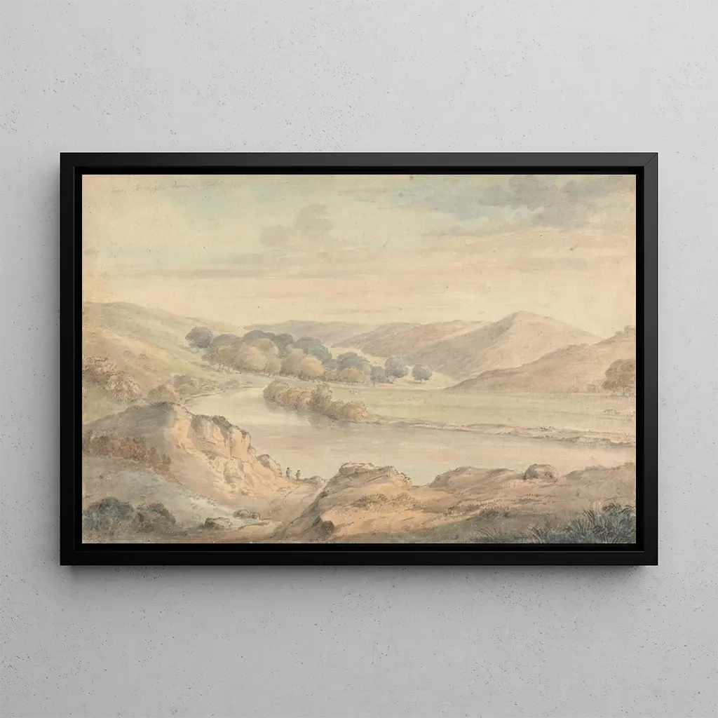 Near Torrington, Devonshire: a bucolic scene imbued with serenity In this art print of Near Torrington, Devonshire, Captain Francis Grose transports us to the heart of a soothing English landscape. The soft shades of green and blue blend harmoniously, creating an atmosphere of tranquility. The oil painting technique captures the delicate nuances of light, reflecting on the water and illuminating the foliage. The composition, with its flowing lines and organic shapes, invites contemplation, evoking a peaceful walk through the English countryside. Captain Francis Grose: a witness to 18th-century England Captain Francis Grose, active in the 18th century, is known for his works celebrating the beauty of British landscapes. Influenced by the Romantic movement, he skillfully captured the essence of nature with particular sensitivity. His travels across England allowed him to observe and depict rural scenes, often tinged with nostalgia for an idealized past. Grose also contributed to documenting the traditions and landscapes of his time, making him an essential artist for understanding the evolution of landscape art in Great Britain. A decorative acquisition with multiple advantages This reproduction of the painting Near Torrington, Devonshire is an ideal choice to enhance your interior, whether in a living room, office, or bedroom. Its print quality and fidelity to the original artwork guarantee undeniable aesthetic appeal. By integrating this canvas into your decor, you bring a touch of serenity and elegance to your space. The soothing nuances of this landscape invite relaxation while adding an artistic dimension to your daily environment.