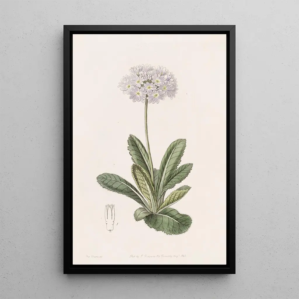 The art print of the work "Primevère à petites dents" by Sydenham Edwards immerses us in a botanical universe filled with tenderness. The pastel shades, ranging from soft yellow to delicate green, intertwine to create a serene and calming atmosphere. The precision of the details, characteristic of the naturalist style, highlights each petal and leaf, as if the piece were a window opening onto a secret garden. This canvas invites contemplation, offering a visual escape that celebrates the beauty of nature.