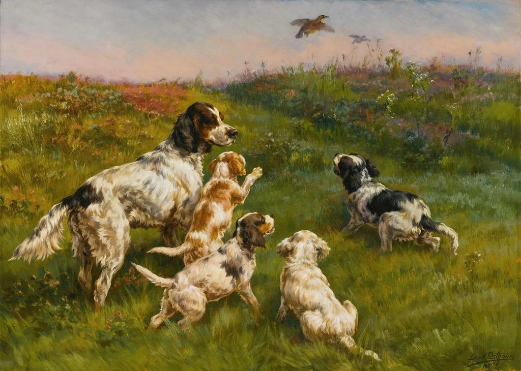 Edmund Henry Osthaus, born in 1858, is recognized as one of the great masters of animal painting in the early 20th century. Influenced by the major artistic movements of his time, notably realism and impressionism, he developed a unique style that highlights the beauty and soul of animals. His work is often marked by meticulous attention to detail and a deep understanding of nature. Osthaus was also a pioneer in the depiction of dogs, earning him lasting recognition in the art world.