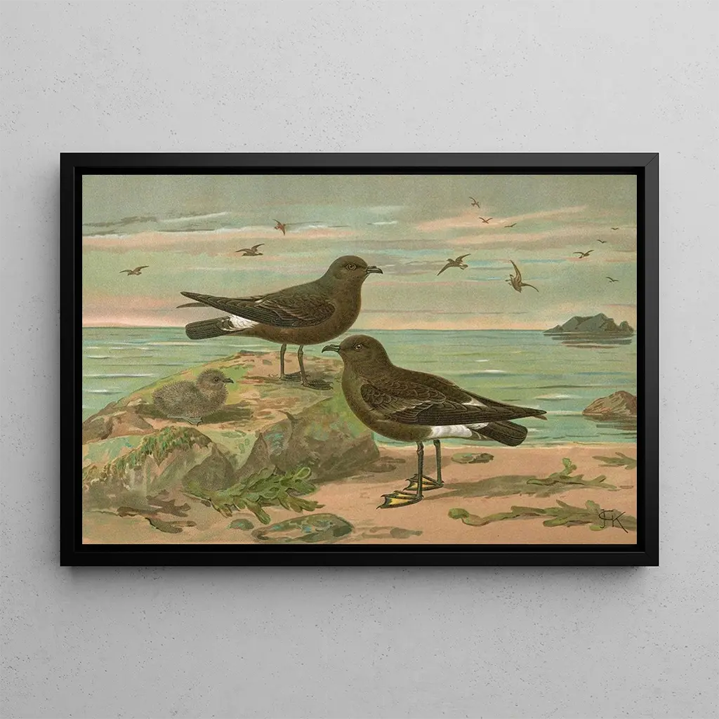 Procellaria pelagica Oceanites oceanicus: a captivating marine ballet Procellaria pelagica Oceanites oceanicus, a work by Johann Friedrich Naumann, vividly and delicately depicts a seabird in full flight. The shades of blue and white evoke the tumultuous waves of the ocean, while the details of the feathers and the bird's posture capture the very essence of wild nature. Naumann's engraving technique highlights the beauty and grace of this bird, offering a window into the fascinating world of marine wildlife and inviting wonder. Johann Friedrich Naumann: a pioneer of artistic ornithology Johann Friedrich Naumann, active in the 19th century, is recognized as one of the forerunners of artistic ornithology. Passionate about birds, he dedicated his life to studying and representing them with remarkable scientific accuracy. His work was created during a time when interest in nature and biodiversity was intensifying, and he successfully combined art and science to raise public awareness of the beauty of the natural world. Naumann left a lasting legacy, influencing many artists and naturalists. A decorative acquisition with multiple advantages The art print of Procellaria pelagica Oceanites oceanicus is an ideal decorative choice for lovers of nature and wildlife. Whether in an office, living room, or bedroom, this artwork will add a touch of elegance and serenity to your interior. Its print quality and attention to detail ensure fidelity to the original work, while offering an aesthetic appeal that will captivate your guests' attention. This canvas is much more than simple decoration; it is a celebration of the beauty of the natural world.