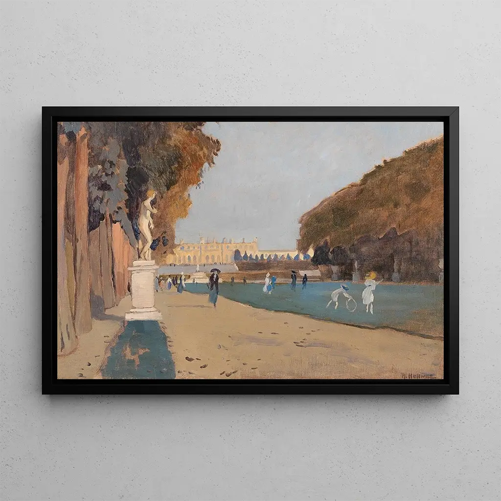 A stroll through the palace gardens: a sensory escape The art print of "A stroll through the palace gardens" by Rudolf Hellwag transports us into a universe of serenity and natural beauty. The soft, soothing colors, blending shades of green, blue, and pink, create a dreamlike atmosphere. The artist's technique, which combines delicate brushstrokes with meticulous attention to detail, brings each element of the garden to life. The vibrant flowers and lush foliage seem almost tangible, inviting the viewer to lose themselves in this enchanting landscape. This piece evokes a peaceful walk, where one can immerse themselves in the beauty of nature. Rudolf Hellwag: a master of romantic landscape art Rudolf Hellwag, active in the early 20th century, is an artist whose work is rooted in the Romantic movement, emphasizing the beauty of natural landscapes. Influenced by the great masters of landscape painting, he developed a style that combines realism and lyricism. His works, often tinged with melancholy, reflect a deep connection with nature and a quest for harmony. Hellwag captured fleeting moments, inviting the viewer to feel the emotion emanating from each scene. His artistic legacy endures, inspiring many contemporary artists to explore the beauty of landscapes. A decorative acquisition with multiple benefits Choosing an art print of "A stroll through the palace gardens" is a wise decision to enhance your interior. Whether in a living room, office, or bedroom, this canvas will add a touch of freshness and serenity to your decor. The quality of the reproduction guarantees fidelity to the colors and details of the original work, allowing you to fully enjoy its aesthetic appeal. By adding this piece to your space, you will create a calming atmosphere, conducive to contemplation and daydreaming, while enriching your environment with a timeless piece of art.