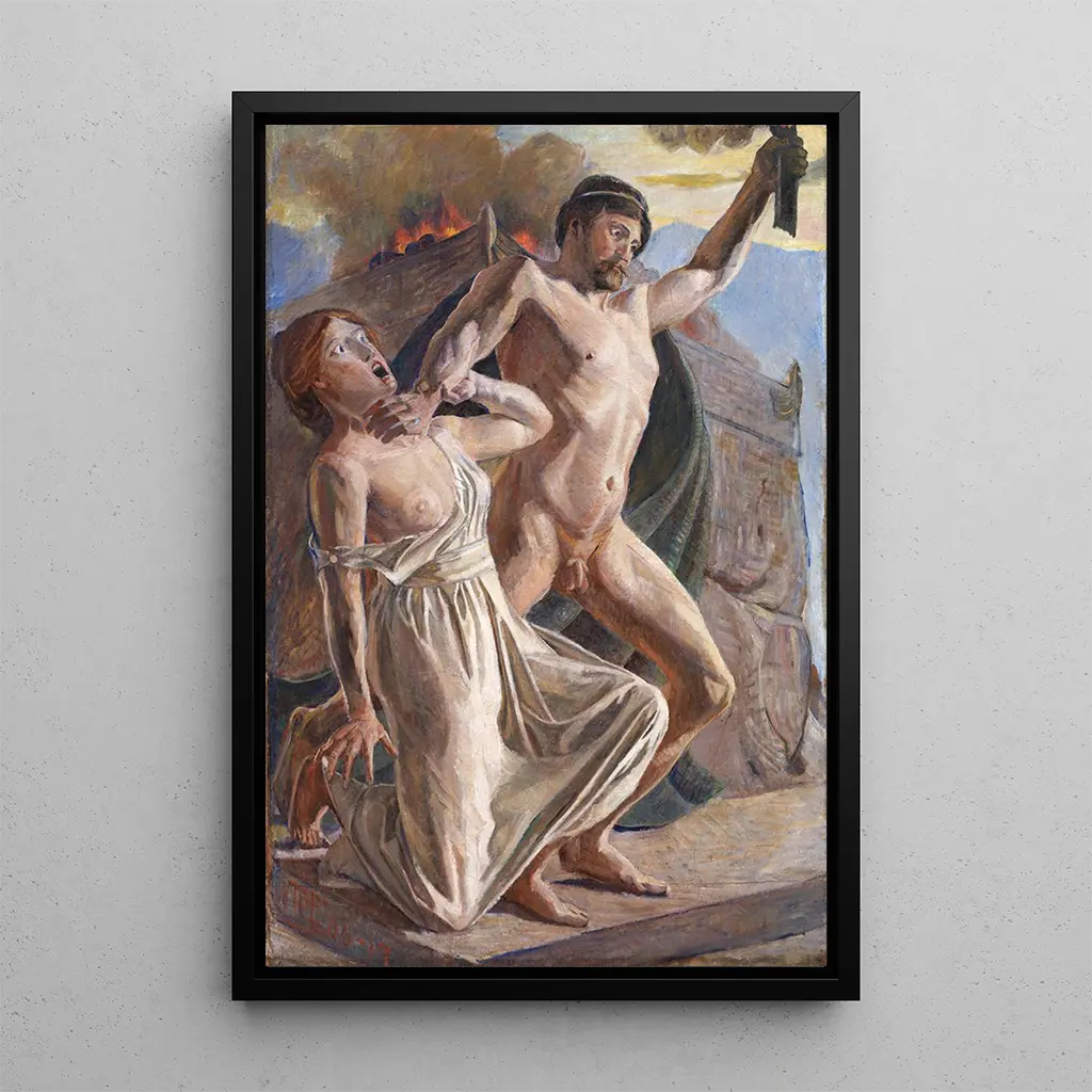 Prométhée steals fire: a act of defiance and creation In "Prométhée steals fire," Poul Simon Christiansen captures a dramatic moment from Greek mythology, where the titan Prométhée, symbol of rebellion and generosity, steals fire from the gods to offer it to humanity. The scene is rendered with palpable emotional intensity, where vivid colors and striking contrasts evoke the struggle between shadow and light. Christiansen's technique, blending realism and romanticism, emphasizes the dynamics of this daring act, creating an atmosphere that is both heroic and tragic. Poul Simon Christiansen: a pioneer of Scandinavian romanticism Poul Simon Christiansen, born in 1838, is a major figure of Scandinavian romanticism. His work, deeply influenced by mythological and literary stories, reflects the concerns of his time, notably the quest for meaning and the fight for individual freedom. "Prométhée steals fire" perfectly illustrates this duality between the aspiration for knowledge and the consequences of human audacity. Christiansen, through his creations, invites the viewer to reflect on universal themes of the human condition and rebellion against the established order. A decorative acquisition with multiple assets The art print of "Prométhée steals fire" makes a captivating addition to your interior decoration. Whether in a living room, office, or bedroom, this painting draws the eye and provokes thought. The quality of the print ensures remarkable fidelity to the nuances and details of the original work, offering an enriching visual experience. By integrating this canvas into your space, you bring a strong artistic dimension, while celebrating the spirit of creativity and challenge that characterizes Christiansen's work.