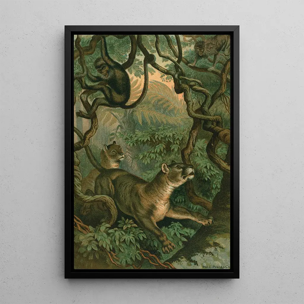 The art print of the Puma, a work by John George Wood, captures the power and grace of this great feline. In this painting, earthy tones and golden shades evoke the natural landscapes where this iconic animal roams. Wood's technique, blending realism and meticulous details, allows you to feel the energy and vitality of the puma. The atmosphere emanating from this canvas is both wild and serene, inviting the viewer to immerse themselves in the fascinating universe of wildlife.