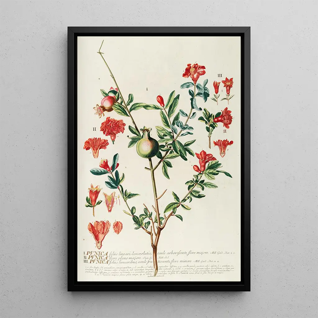 Choosing an art print of Punica is to enrich your interior decor with a unique and lively piece. Whether in a living room, office, or bedroom, this artwork adds a touch of color and nature that brightens the space. The quality of the print ensures remarkable fidelity to the details and colors of the original work, allowing you to enjoy Ehret's art daily. By integrating this canvas into your decor, you create a warm and welcoming atmosphere while paying homage to the beauty of pomegranate trees.