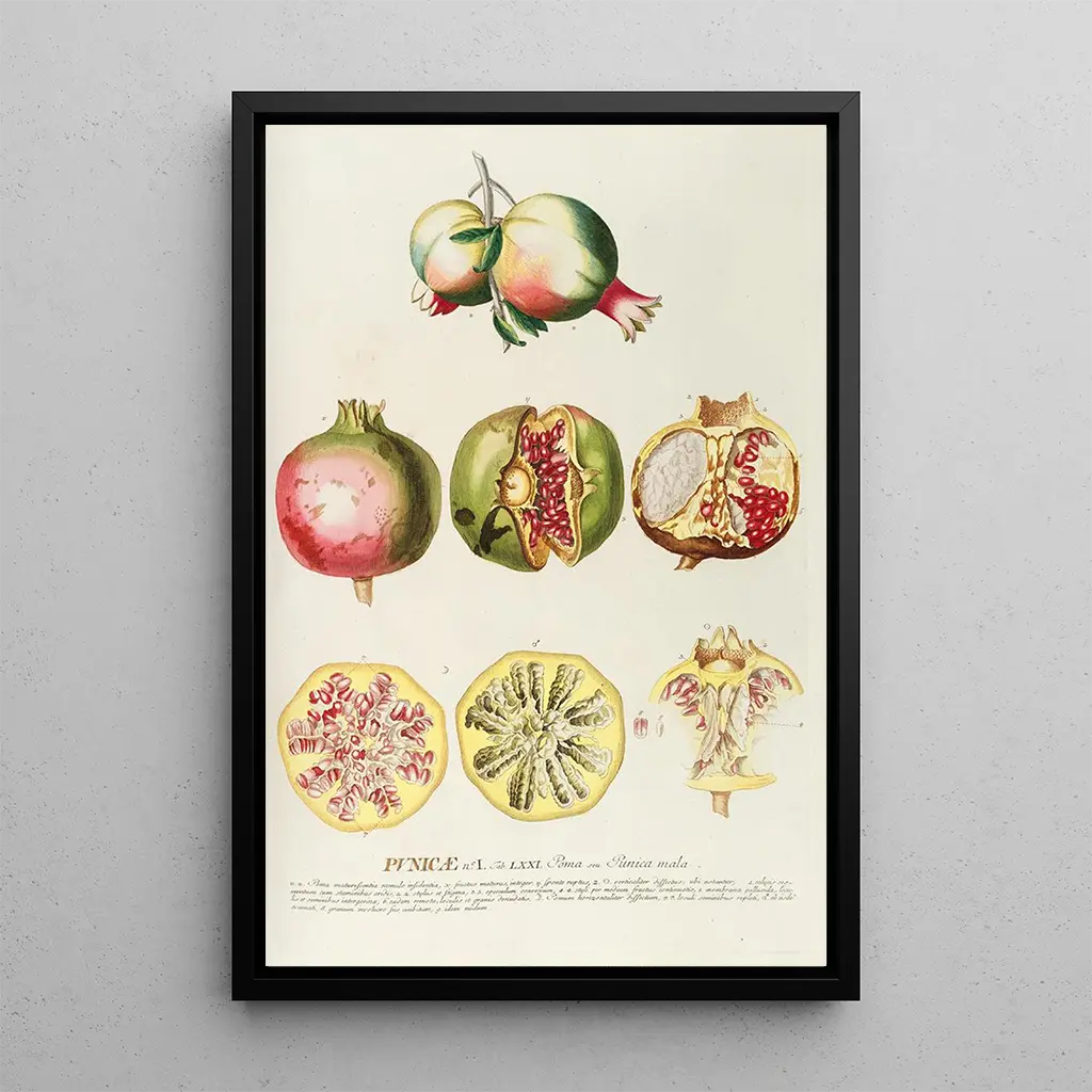 The art print of the Punicae painting is an ideal choice to enhance your interior, whether in a living room, office, or bedroom. Its printing quality guarantees fidelity to the colors and details of the original work, adding a touch of elegance and sophistication to your decor. This piece attracts the eye and sparks conversations, while evoking natural beauty. By choosing this canvas, you opt for a decorative piece that enriches your living space while celebrating botanical art.