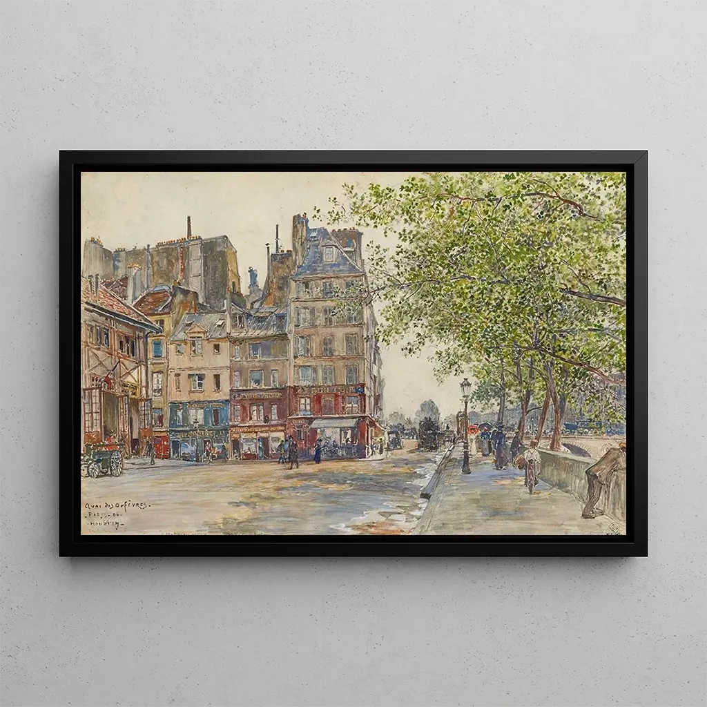 Quai des Orfèvres Paris 1906 : a dive into Parisian life The art print of "Quai des Orfèvres Paris 1906" offers a fascinating glimpse into urban life in Paris at the beginning of the 20th century. Frédéric Houbron, with his keen eye, captures a lively scene where passersby cross paths, each absorbed in their own world. The vibrant colors and play of light evoke the buzz of the French capital, while the architectural details of the surrounding buildings add depth to the composition. This painting, a true window into the past, transports us to an era when Paris was the nerve center of culture and art. Frédéric Houbron: an artist at the heart of modernity Frédéric Houbron, French painter and illustrator, managed to capture the spirit of his time through his works. Active in the early 20th century, he is often associated with the Impressionist movement, although he developed a unique style blending realism and Impressionist touches. Influenced by the great masters of his era, Houbron mastered the depiction of light and movement with great skill. His works, including "Quai des Orfèvres Paris 1906," testify to a period of transition, when modernity began to assert itself in the French artistic landscape, while paying homage to the timeless beauty of the City of Light. A decorative piece with multiple assets Incorporating the art print of "Quai des Orfèvres Paris 1906" into your interior decor means choosing a canvas that evokes both history and modernity. Whether in a living room, office, or workspace, this artwork will add a touch of elegance and dynamism. Its printing quality ensures remarkable fidelity to the details and colors of the original work, allowing you to fully appreciate its aesthetic appeal. By selecting this art print, you invite a piece of Parisian history into your daily life, creating an inspiring and lively atmosphere.