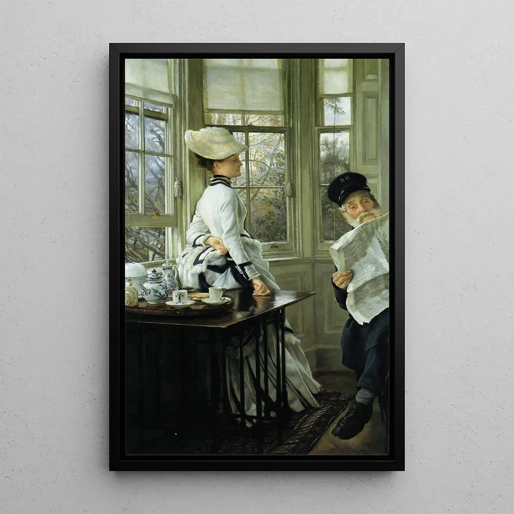 Born in 1836 in Nantes, James Tissot is a French painter whose work is part of the Impressionist movement, although he also explored other styles. Influenced by his travels in England and the Orient, Tissot develops a unique style, combining precision and sensitivity. His works, often focused on themes of modern life and scenes of high society, reflect his interest in the psychology of characters. Through paintings like "Reading the news," he manages to capture moments of life with emotional depth, making him an essential artist of the 19th century.