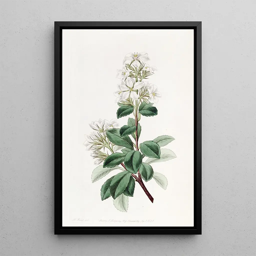 Raphiolepis red: a burst of natural colors The art print Raphiolepis red immerses us in a vibrant universe where nature expresses itself with brilliance. The shades of red, green, and white blend harmoniously, creating an atmosphere that is both lively and soothing. The watercolor technique, used by the artist, captures the delicacy of the petals and the texture of the leaves with striking lightness. Every detail is carefully rendered, inviting the viewer to appreciate the ephemeral beauty of this flower. This work is an ode to nature, a celebration of the flora that surrounds us and deserves to be contemplated. Sydenham Edwards: a pioneer of artistic botany Sydenham Edwards, active in the early 19th century, is recognized for his essential role in botanical illustration. Influenced by the scientific discoveries of his time, he mastered combining scientific accuracy and aesthetic appeal in his works. His illustrations, including the art print of Raphiolepis red, demonstrate a deep respect for nature and a desire to document it artistically. Edwards collaborated with renowned botanists, thus contributing to the dissemination of botanical knowledge through art. His legacy endures, inspiring artists and plant lovers to this day. A decorative acquisition with multiple advantages The art print of Raphiolepis red is an ideal decorative piece to enhance your interior. Whether in a living room, office, or bedroom, this artwork adds a touch of freshness and vitality. Its printing quality guarantees fidelity to the colors and details of the original work, while offering undeniable aesthetic appeal. Hanging this canvas is an invitation to bring the beauty of nature into your living space, creating a warm and welcoming atmosphere. This work is not only a decorative choice but also a tribute to floral splendor.