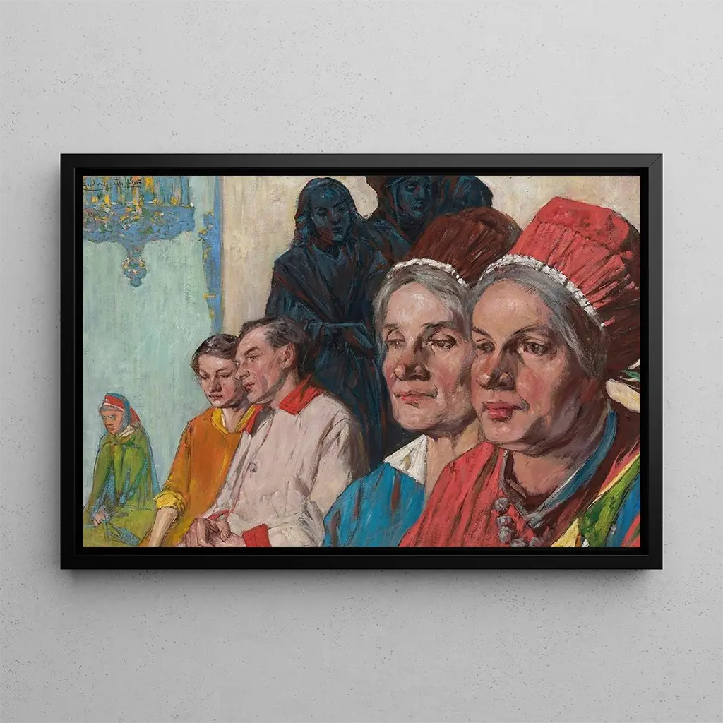 The painting "Religious Service in Levoča" by Ludwik Stasiak immerses us in an atmosphere of reverence and spirituality. The warm colors, dominated by browns and golds, evoke the subdued light of a church, while the meticulous details of the faces of the faithful testify to great artistic sensitivity. The composition, centered on the priest during the ceremony, draws the eye and invites contemplation. Every element, from the furniture to the characters' clothing, contributes to creating an immersive, almost tangible ambiance where the viewer can feel the intensity of faith and community.