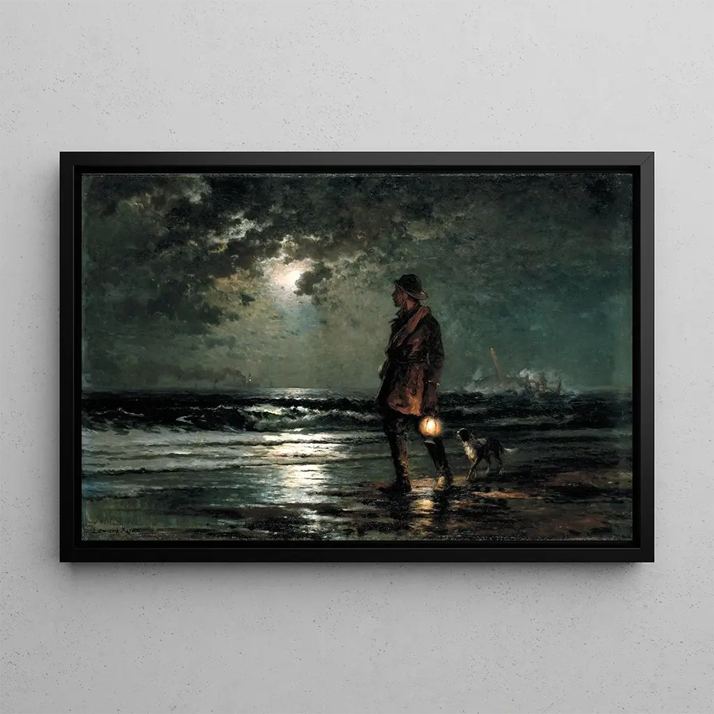 Edward Moran, born in 1829, was an American painter renowned for his maritime works. Influenced by the great European masters, he developed a unique style that combines precision and emotion. Active mainly in the 19th century, he captured the beauty and danger of the seas, becoming an iconic figure of the American artistic movement. His works, often inspired by historical events or tales of bravery, testify to the importance of the sea in the collective imagination of his time. "Rescue Patrol" fits perfectly into this tradition, celebrating both heroism and the majesty of nature.