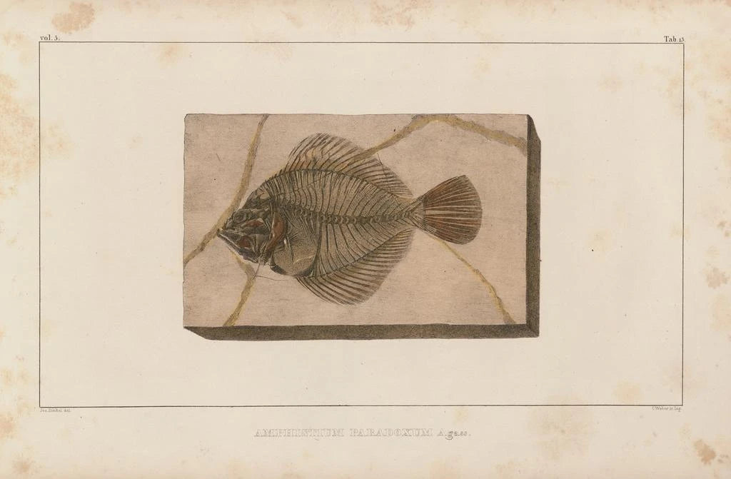 Louis Agassiz, an eminent naturalist of the 19th century, is considered one of the founders of modern paleontology. His passion for studying fossils led him to create illustrations that have become references in the field. Influenced by geological discoveries of his time, he knew how to combine scientific rigor with artistic sensibility. Research on Fossil Fish Pl027 is a perfect example of his work, demonstrating his commitment to documenting past biodiversity and raising public awareness about the importance of species conservation.