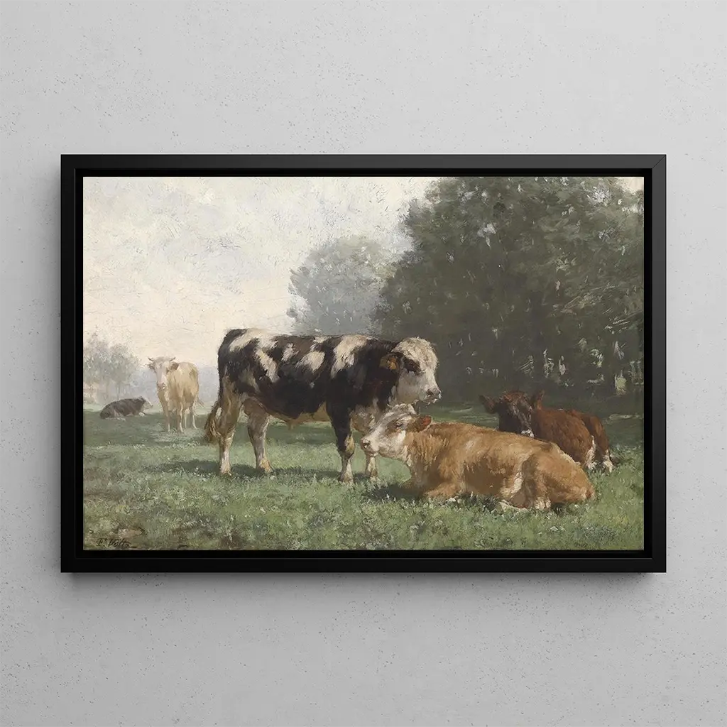 Pastured Cows at Rest: A Bucolic Serenity "Pastured Cows at Rest" is an artwork that captures the tranquility of rural life. Friedrich Voltz, through this canvas, transports us to a pastoral landscape where cows graze peacefully under a bright sky. The shades of green and blue blend harmoniously, evoking the freshness of the meadows. Voltz's technique, characterized by delicate brushstrokes, brings this bucolic scene to life, creating an atmosphere of calm and serenity. This art print of "Pastured Cows at Rest" is an ode to nature and the simplicity of country life. Friedrich Voltz: a master of rural landscapes Friedrich Voltz, a German painter of the 19th century, is renowned for his depictions of rural life and natural landscapes. Influenced by Romanticism, he captured the beauty of everyday scenes with particular sensitivity. Voltz dedicated his career to immortalizing the lives of farmers and animals, making his works a valuable testimony of his era. His ability to convey emotions through simple yet evocative landscapes has made him a respected artist. This art print of "Pastured Cows at Rest" highlights the importance of his artistic legacy. A decorative acquisition with multiple benefits The reproduction of "Pastured Cows at Rest" is a perfect choice to enhance your interior decor. Whether in a living room, office, or bedroom, this canvas adds a touch of nature and serenity to your space. Its printing quality ensures remarkable fidelity to the details and colors of the original artwork, while seamlessly fitting into various decorative styles. By choosing this piece, you give your interior a calming atmosphere, conducive to relaxation and escape.