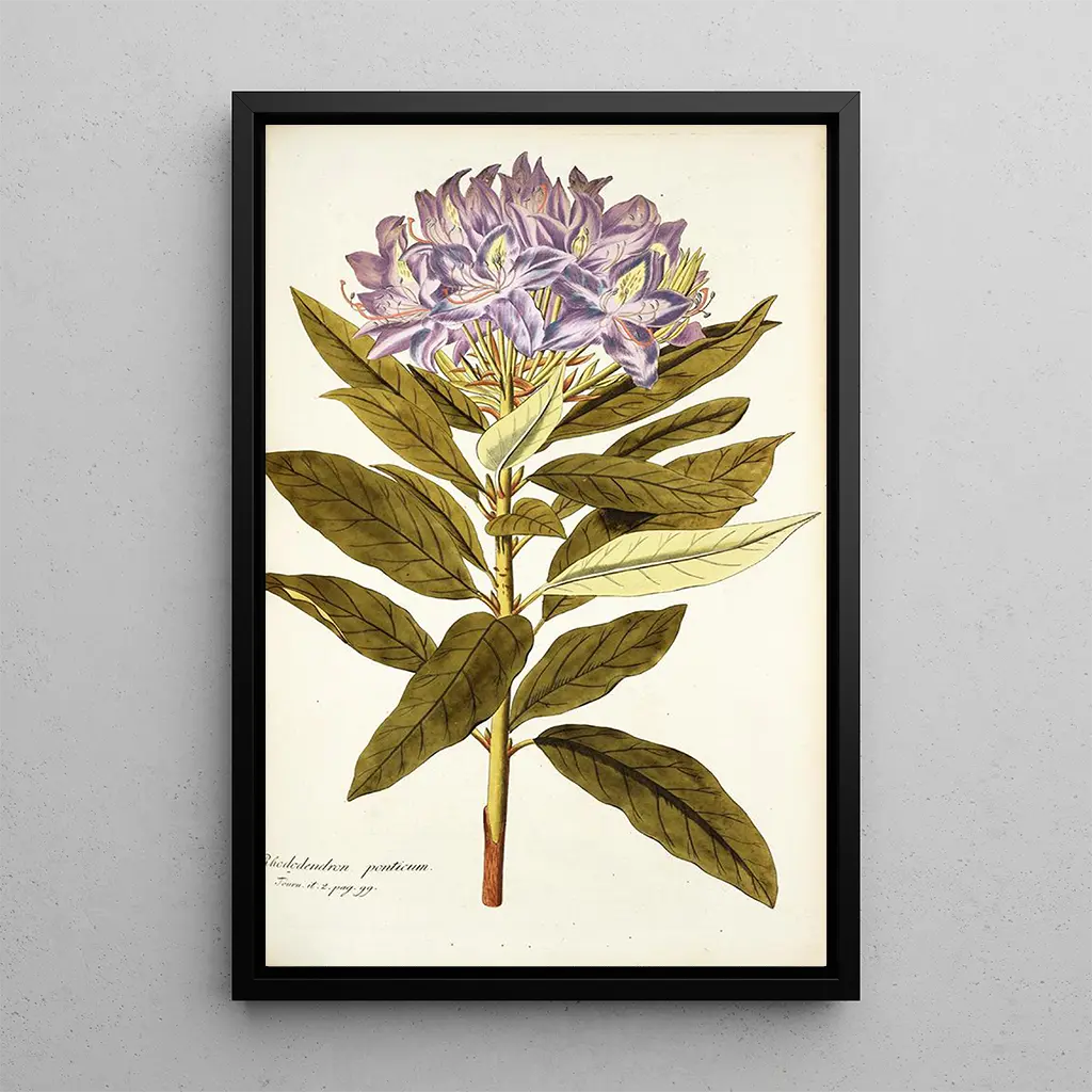 Rhododendron ponticum : a burst of floral colors The art print Rhododendron ponticum, created by Nikolaus Joseph Freiherr von Jacquin, is a true celebration of flora. This painting highlights the vibrant and lush flowers of this plant, capturing the very essence of natural beauty. The bright shades of pink and purple, contrasted by dark green leaves, create a joyful and dynamic atmosphere. The watercolor technique, used with finesse, renders the delicacy of the petals and the richness of textures, inviting the viewer to immerse themselves in a lush garden. Every detail is carefully observed, demonstrating a deep respect for nature. Nikolaus Joseph Freiherr von Jacquin: an artist dedicated to botany Nikolaus Joseph Freiherr von Jacquin, an iconic figure of the 18th century, masterfully combined art and science through his botanical illustrations. Influenced by his travels in America and Asia, he dedicated his life to the study of plants, becoming a pioneer in the field of botanical art print. His works, such as Rhododendron ponticum, are not only artistic representations but also valuable contributions to science. Jacquin thus left his mark on his era with his innovative approach, blending aesthetics and scientific rigor, and his legacy endures today in the worlds of art and botany. A decorative acquisition with multiple advantages Choosing the art print Rhododendron ponticum means adding a touch of freshness and color to your interior. This painting, ideal for a living room, office, or bedroom, will bring a lively and welcoming atmosphere. Its print quality guarantees fidelity to the details of the original work, making this canvas a decorative element of choice. The aesthetic appeal of this art print lies in its ability to transform a space, adding a floral and vibrant note. By incorporating this piece into your decor, you invite the beauty of nature to flourish in your home, while celebrating botanical art.
