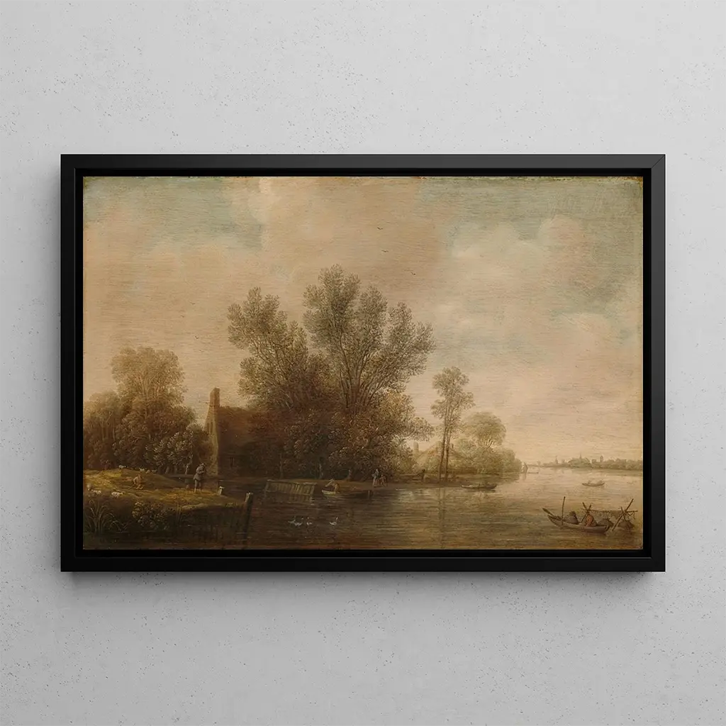 The art print of the "River Landscape" is an ideal choice to enhance your interior, whether in a living room, office, or bedroom. Its reproduction quality guarantees remarkable fidelity to the original details, allowing you to enjoy a timeless work of art. With its aesthetic appeal, this canvas adds a touch of serenity and nature to your decor. By integrating this art print into your space, you create a calming and inspiring atmosphere, perfect for relaxation and reflection.