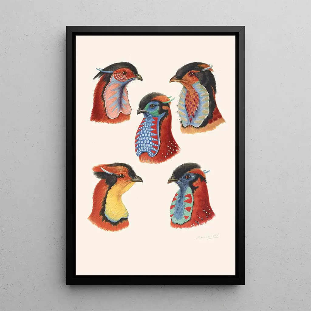 The art print of the "Caroncules of Western Tragopan Cocks" is an ideal decorative piece to enhance your interior, whether in a living room, office, or bedroom. Its printing quality ensures remarkable fidelity to the colors and details of the original artwork, adding a touch of elegance and nature to your space. This piece draws the eye and sparks conversations, while adding an artistic dimension to your decor. Treat yourself to this canvas to transform your environment into a place where the beauty of nature is celebrated.