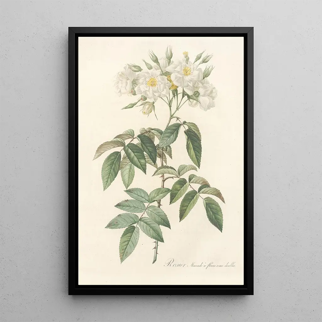The art print of Rosa Moschata Flore Semi-Pleno is a decorative piece that harmoniously fits into various spaces, whether a living room, an office, or a bedroom. Its print quality and fidelity to the original details make it an ideal choice for those who appreciate floral art. With its undeniable aesthetic appeal, this canvas brings a touch of freshness and sophistication to your interior. By choosing this art print, you not only acquire a work of art but also a decorative element that evokes the timeless beauty of nature.