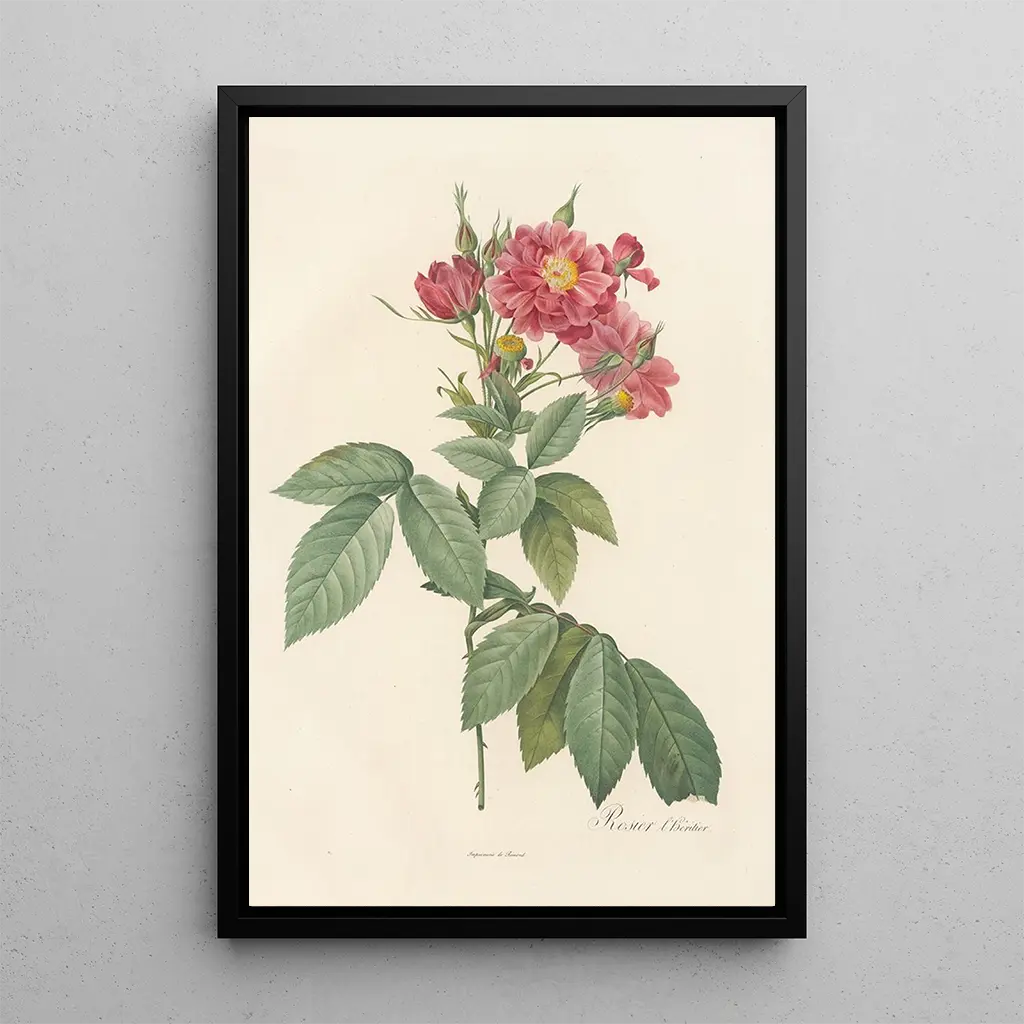 Rosa Lheritieranea : a delicate floral harmony The art print of Rosa Lheritieranea, an iconic work by Pierre Joseph Redouté, transports us into a world of softness and refinement. The delicate petals, in a tender pink, bloom gracefully, while the green leaves, with a striking brilliance, add a touch of freshness. The watercolor technique, mastered by Redouté, allows for capturing light and color nuances with remarkable precision. The atmosphere emanating from this canvas is both soothing and inspiring, inviting a serene contemplation of natural beauty. Pierre Joseph Redouté : the flower painter of the 18th century Pierre Joseph Redouté, nicknamed the "Raphael of flowers," was a Belgian artist who marked the 18th century with his exceptional talent in botanical representation. Influenced by royal gardens and scientific discoveries of his time, he skillfully combined art and science, paying homage to the beauty of flora. His works, often commissioned by the nobility, reflect the growing importance of botanical gardens and interest in botany during this period. Redouté thus contributed to immortalizing plant species, making him a key figure in the history of floral art. A decorative acquisition with multiple advantages Choosing an art print of Rosa Lheritieranea means selecting a decorative piece that will enhance any space, whether a living room, an office, or a bedroom. The quality of the print guarantees remarkable fidelity to the colors and details of the original work, offering undeniable aesthetic appeal. This canvas, with its timeless charm, harmoniously fits into various decorating styles, from classic to contemporary. By adding this piece to your interior, you invite nature and poetry into your daily life, while celebrating the art of Pierre Joseph Redouté.