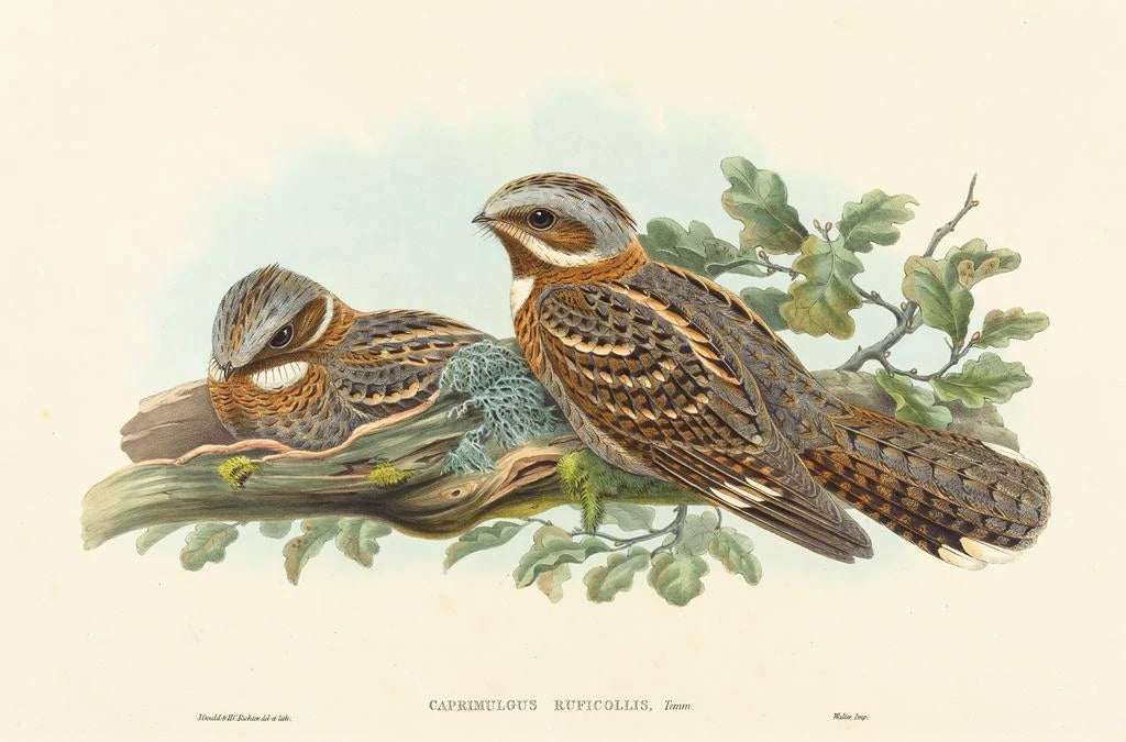 Engoulvent à collier roux: a moment suspended in nature The art print of the Engoulvent à collier roux by John Gould presents a captivating moment in bird life. This painting highlights a nightjar, with its delicate plumage and earthy tones, blending perfectly into its natural environment. Gould, with his keen eye for detail, manages to capture the grace and beauty of this bird, while evoking an atmosphere of tranquility. The warm colors and rich textures of the canvas create a sense of depth, inviting the viewer to immerse themselves in this wild landscape. John Gould: pioneer of artistic ornithology John Gould, a famous 19th-century ornithologist and illustrator, played a crucial role in documenting bird species around the world. His work, often considered a fusion of science and art, helped to showcase the avian richness of many regions. Gould traveled to distant lands, inspired by the diversity of birds he encountered. The art print of the Engoulvent à collier roux is a perfect example of his meticulous approach and commitment to accurately representing wildlife, leaving his mark in the history of naturalist art. A decorative piece with multiple virtues The art print of the Engoulvent à collier roux is a decorative piece that will enrich your interior, whether in a living room, office, or bedroom. Its printing quality ensures exceptional fidelity to the details of the original work, bringing a touch of nature and elegance to your decor. This painting, with its unique charm, invites contemplation and wonder, transforming your space into a sanctuary of natural beauty. By choosing this canvas, you opt for a work of art that combines aesthetics and serenity, ideal for any nature lover.