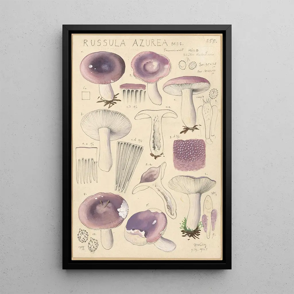 Choosing an art print of Russula azurea means adding a unique piece to your interior decor. Whether in a living room, office, or bedroom, this canvas brings a touch of nature and elegance. The quality of the reproduction ensures remarkable fidelity to the details of the original work, allowing you to appreciate its beauty in your living space. With its aesthetic appeal, this piece becomes a focal point, sparking interest and admiration from all who view it.