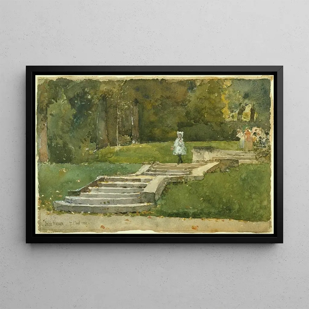 The Saint-Cloud art print by Childe Hassam immerses us in a vibrant universe where light dances across the landscapes. This painting, imbued with vivid colors, captures the essence of a fleeting moment, where sun reflections blend with shades of green and blue. Hassam's Impressionist technique, characterized by quick brushstrokes and juxtaposed touches of color, creates a lively and dynamic atmosphere. You can almost feel the breeze and the whisper of leaves, inviting the viewer to immerse themselves in this bucolic scene.