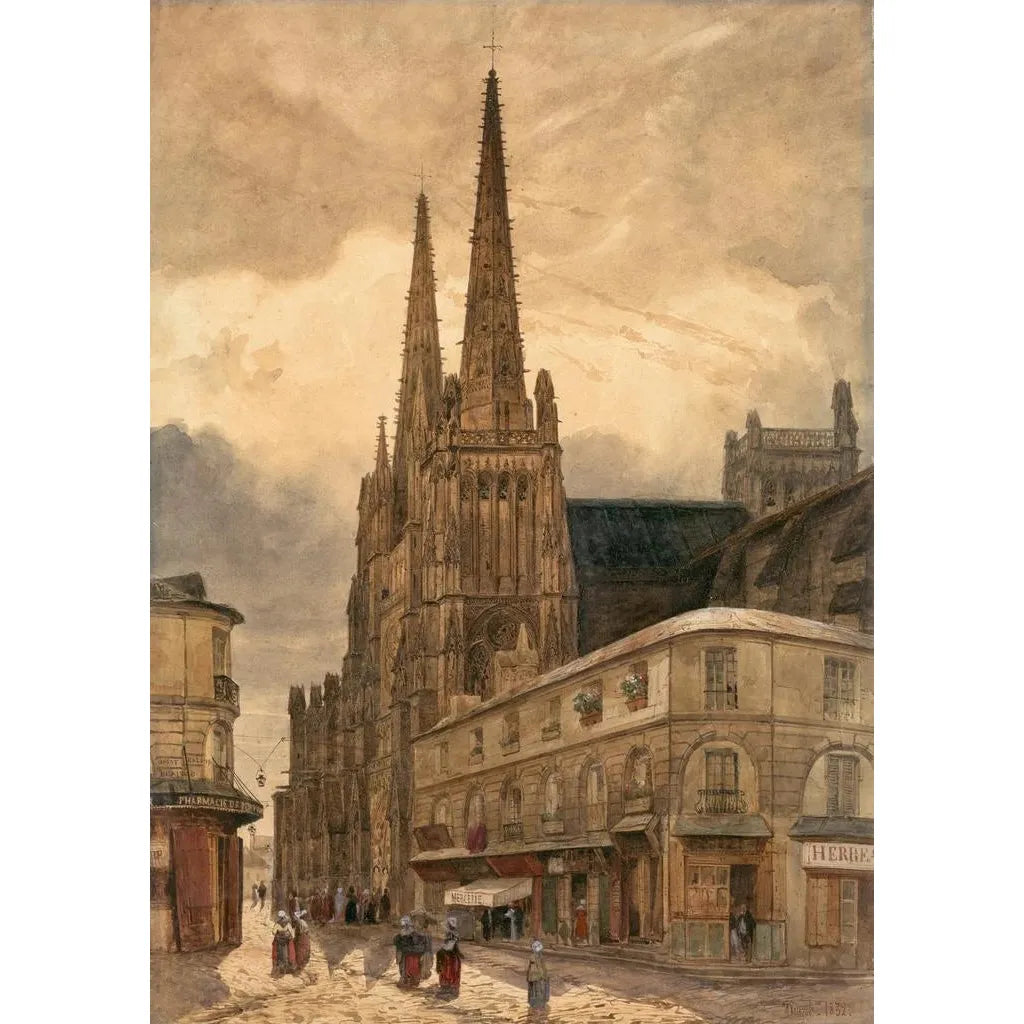 Adrien Dauzats, a 19th-century painter, is recognized for his talent in capturing emblematic monuments of France. His work, influenced by the Romantic movement, focuses on depicting landscapes and historic architectures. By painting the Cathedral Sainte-André, Dauzats demonstrates his attachment to French heritage and his desire to preserve the memory of these edifices. His artistic approach, combining precision and sensitivity, makes him a major figure in the art of his time, contributing to the valorization of architectural treasures.