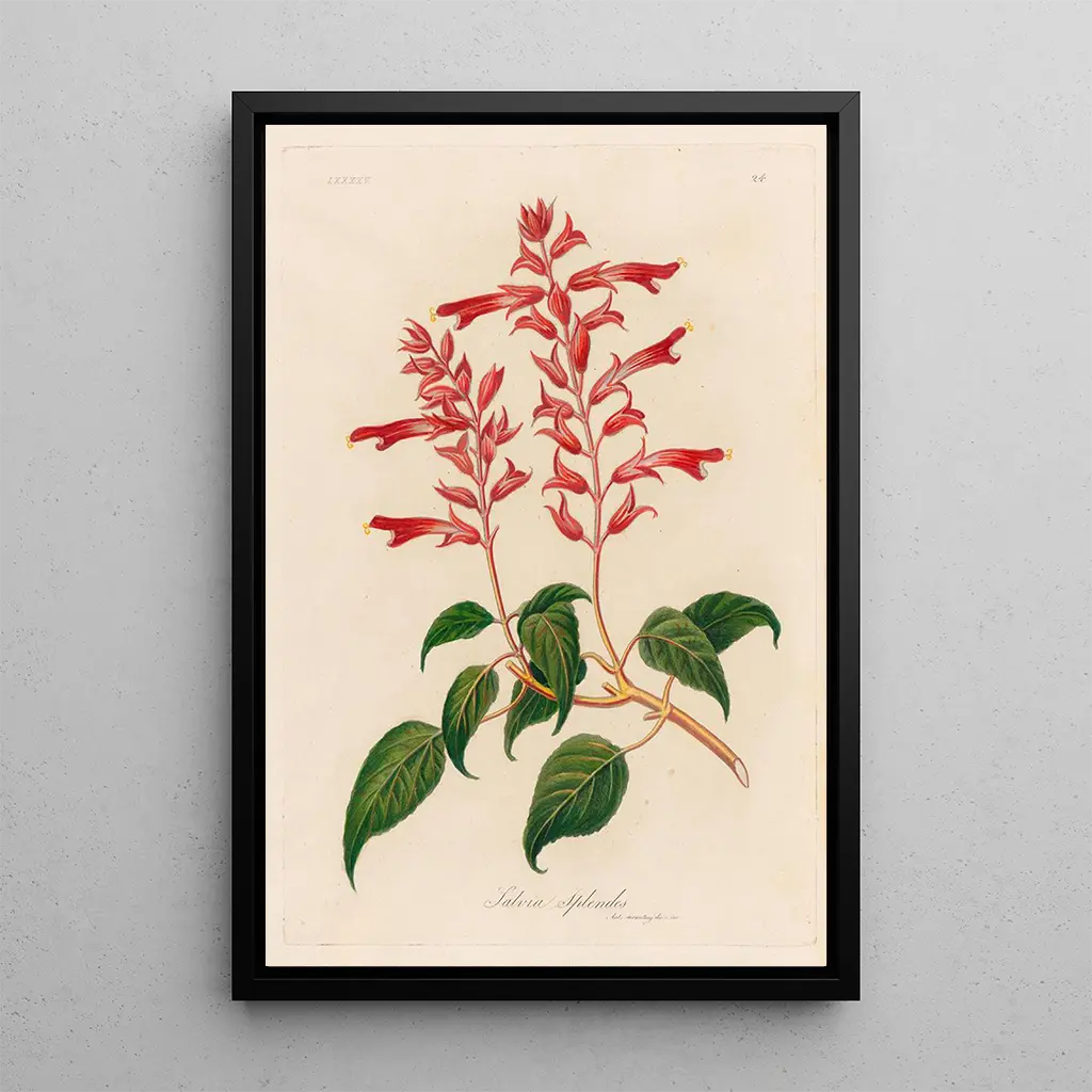 The art print of Salvia splendens is an ideal choice to enhance your interior, whether in a living room, office, or bedroom. Its palette of vivid colors brings a touch of freshness and vitality to any space. Moreover, the quality of the print guarantees remarkable fidelity to the original details, allowing you to fully appreciate Savi’s work. By choosing this canvas, you add not only a decorative piece but also a conversation starter that reflects your taste for art and nature. This piece is an invitation to contemplation, enriching your environment with its timeless beauty.