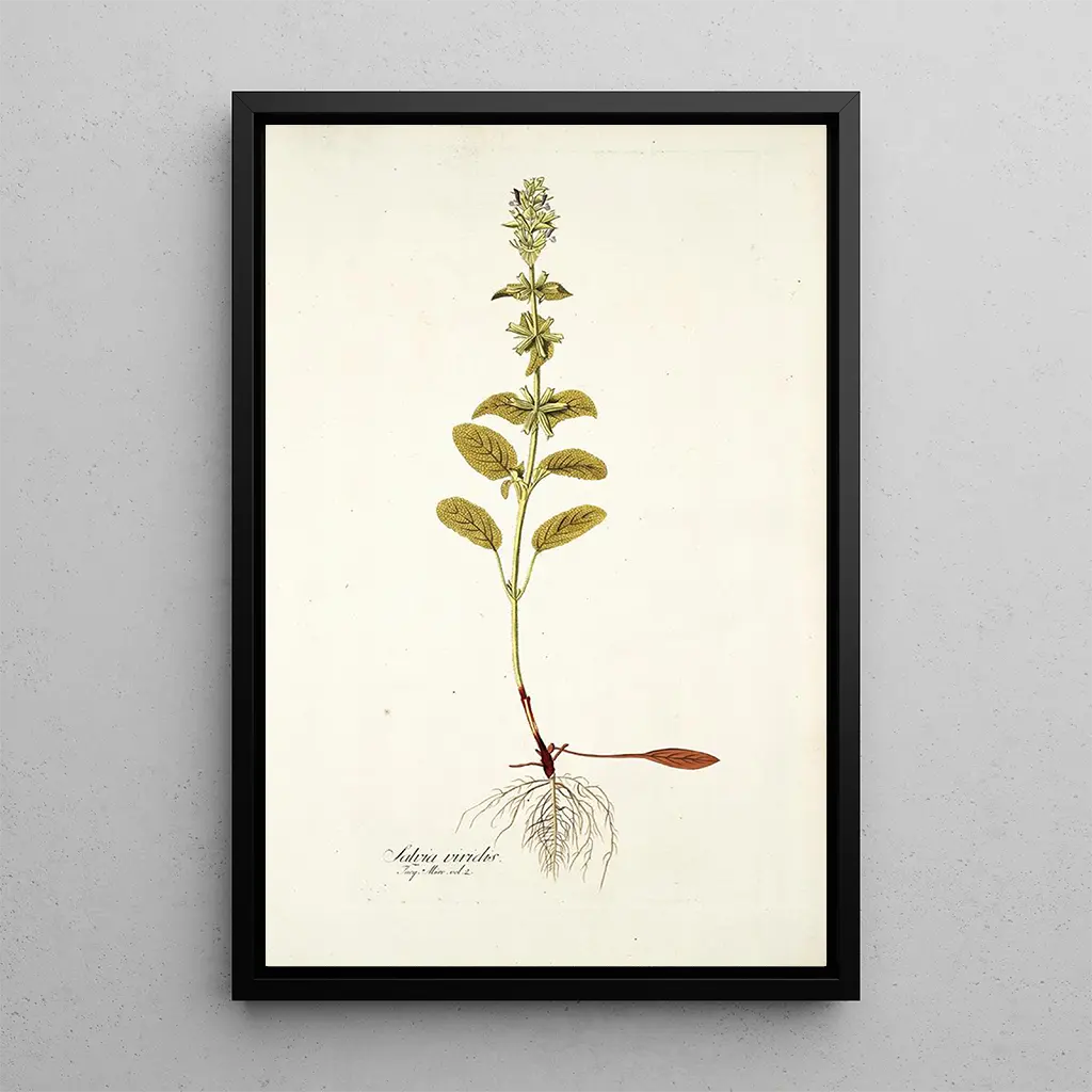 The art print of Salvia viridis invites us to discover the richness and diversity of plants. This painting, with its vibrant shades of green and blue, evokes a sense of freshness and vitality. The technique used by the artist captures the delicate details of this plant, from the leaves to the flowers, creating a lively and dynamic atmosphere. Each element is carefully rendered, demonstrating a passion for botany and a desire to celebrate the beauty of nature.