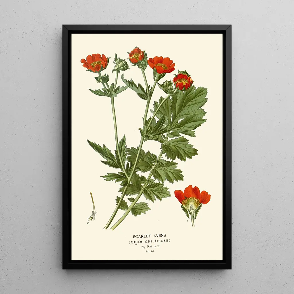 The art print of Benoîte Écarlate transports us into a world where nature expresses itself in all its splendor. Edward Step, through this piece, highlights the richness of colors and the complexity of the shapes of this plant. The shades of deep red and vibrant green blend to create a harmonious and captivating composition. Step's technique, which combines realism and sensitivity, allows you to feel the texture of the petals and the lightness of the leaves. This canvas evokes an atmosphere of serenity and connection with nature, inviting the viewer to contemplate the beauty that surrounds them.