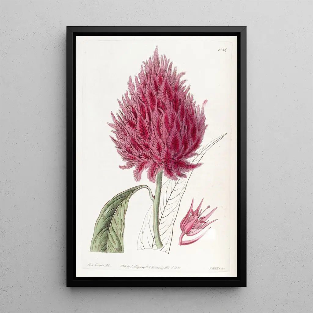 Célosia écarlate : un éclat de passion florale La reproduction de la Célosia écarlate nous plonge dans un univers vibrant où la nature s’exprime avec éclat. Les teintes rouges et orangées de cette fleur, soigneusement rendues, capturent la lumière d'une manière presque magique. La technique de l’aquarelle, utilisée par Sydenham Edwards, permet de donner vie à chaque pétale, créant une atmosphère à la fois chaleureuse et dynamique. L’œuvre invite à une contemplation attentive, révélant la délicatesse des détails et la richesse des nuances, comme un hommage à la beauté éphémère de la flore. Sydenham Edwards : un pionnier du jardin botanique Sydenham Edwards, actif au début du 19ème siècle, est reconnu pour ses contributions significatives à l’illustration botanique. Influencé par le mouvement romantique, il a su allier précision scientifique et sensibilité artistique dans ses œuvres. Ses illustrations, dont la Célosia écarlate, témoignent d'une époque où l'exploration des plantes exotiques était en plein essor. Edwards a collaboré avec des botanistes renommés, ce qui lui a permis de documenter des espèces rares et de participer à la diffusion des connaissances botaniques à travers l’Europe. Son héritage perdure, inspirant les amateurs de botanique et d’art. Une acquisition décorative aux multiples atouts La reproduction de la Célosia écarlate constitue un choix décoratif idéal pour divers espaces, que ce soit dans un salon, un bureau ou une chambre. Sa palette de couleurs vibrantes apporte une touche de chaleur et de vitalité à n'importe quel intérieur. La qualité de la reproduction garantit une fidélité aux détails de l'œuvre originale, tout en offrant un attrait esthétique indéniable. En intégrant ce tableau dans votre décoration, vous créez un point focal captivant qui suscite l’admiration et la curiosité, tout en célébrant la beauté de la nature.
