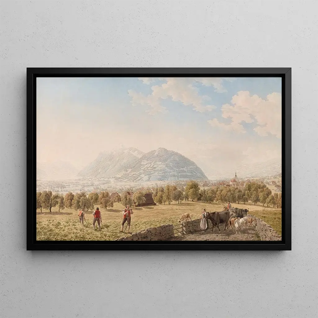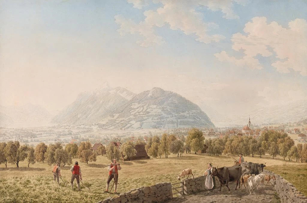 Artiste suisse du XIXe siècle, Johann Jakob Biedermann est reconnu pour sa capacité à capturer la beauté des paysages suisses. Influencé par le romantisme, il se démarque par son approche réaliste et poétique de la nature. Biedermann a su traduire l’essence de son pays à travers ses œuvres, faisant de lui une figure importante de l’art paysager helvétique. Son travail reflète non seulement la beauté des paysages, mais également une quête d’identité nationale à une époque de bouleversements politiques et sociaux. La reproduction de "Schwyz de l'est" témoigne de cet héritage artistique, offrant un aperçu de la richesse culturelle de la Suisse.