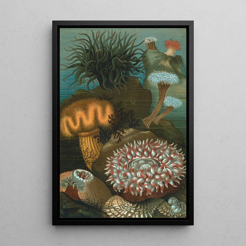 Anemones: a mesmerizing aquatic dance The art print of John George Wood's Anemones transports us to the depths of the ocean, where life flourishes in a palette of vibrant colors. This painting, rich in detail, captures the delicacy and beauty of these marine creatures, oscillating between the deep blue of the ocean and the bright hues of the anemones. Wood's technique, blending realism and impressionism, creates an almost fairy-tale atmosphere, inviting the viewer to dive into this fascinating aquatic universe. John George Wood: art at the heart of nature John George Wood, a 19th-century naturalist and artist, dedicated his career to the study and depiction of fauna and flora. His works, marked by meticulous observation, testify to his commitment to nature and his desire to raise public awareness of its beauty. By integrating scientific elements into his art, Wood managed to create a bridge between aesthetics and education, making him a pioneer in the representation of marine species. His work remains a reference for those interested in the interaction between art and nature. A decorative acquisition with multiple benefits Choosing an art print of John George Wood's Anemones adds a touch of freshness and vitality to your interior decor. Whether in a living room, bathroom, or office, this canvas evokes the wonders of the ocean and brings a soothing ambiance. Its printing quality ensures fidelity to the colors and details of the original artwork, while offering undeniable aesthetic appeal. This piece will captivate your guests' attention and enrich your living space with an artistic and marine note.