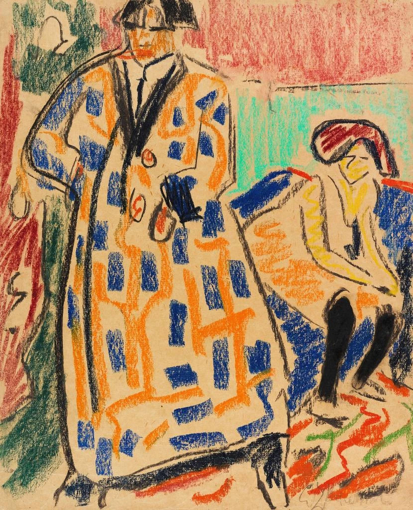Ernst Ludwig Kirchner, born in 1880 in Dresden, was one of the founders of the group Die Brücke, which played a decisive role in the emergence of Expressionism in Germany. His work, marked by a desire to break with conventions, influenced many contemporary and future artists. Kirchner drew inspiration from urban life, landscapes, and human figures, exploring the tensions between the individual and society. His commitment to a subjective vision of reality paved the way for later artistic movements, such as Surrealism and the