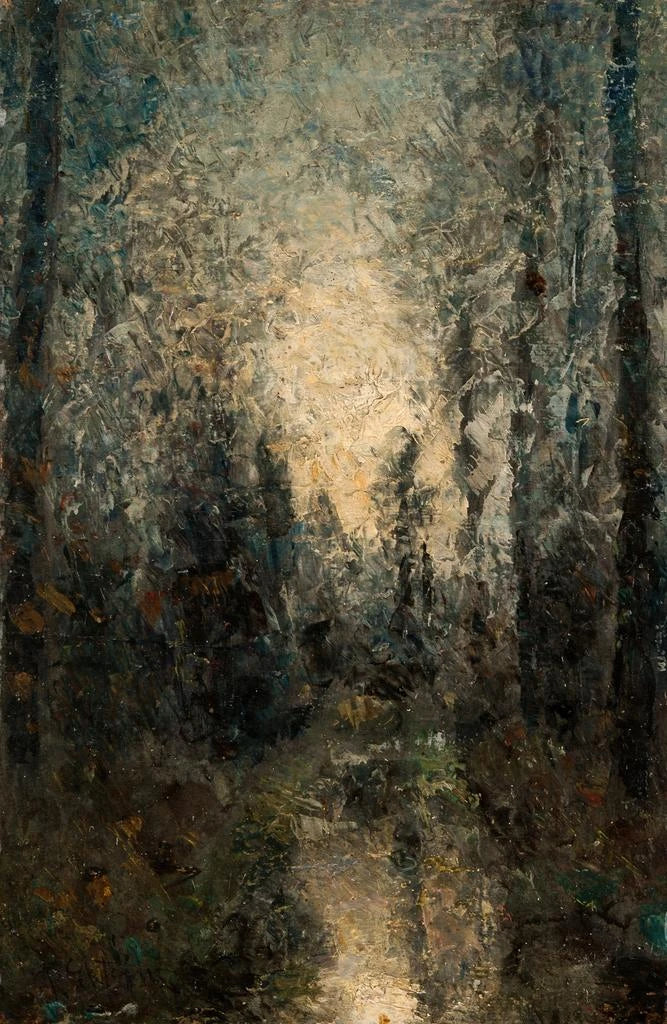 is a art print that captures the magic of sunlight filtering through the foliage. Per Ekström, with his mastery of colors and light, manages to create an almost tangible atmosphere, where each reflection seems to dance on the canvas. The golden and green hues blend with enchanting softness, evoking the tranquility of a forest walk. This painting invites daydreaming, contemplation of nature's wonders, and reminds us of the importance of these moments of inner peace.Per Ekström: a pioneer of Scandinavian landscape art