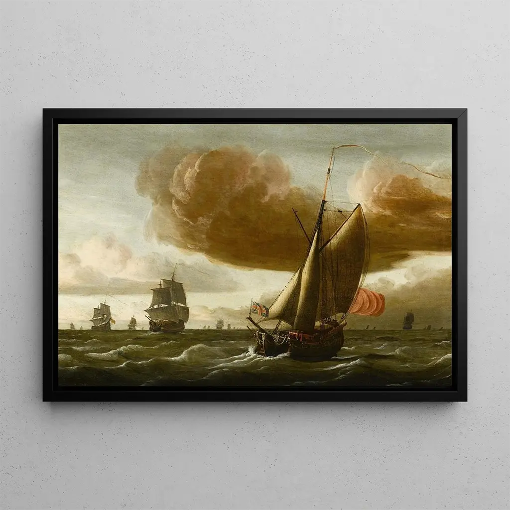"Ships at Sea" by Ludolf Bakhuizen is a work that celebrates the majesty of the oceans and the beauty of sailing ships. The canvas depicts a dynamic maritime scene, where waves clash and sails swell with the wind. The vivid colors and the play of light on the water create an atmosphere that is both lively and serene. Bakhuizen, with his technical skill, manages to capture the movement and energy of the sea, offering an immersive visual experience that transports the viewer to the heart of the action.