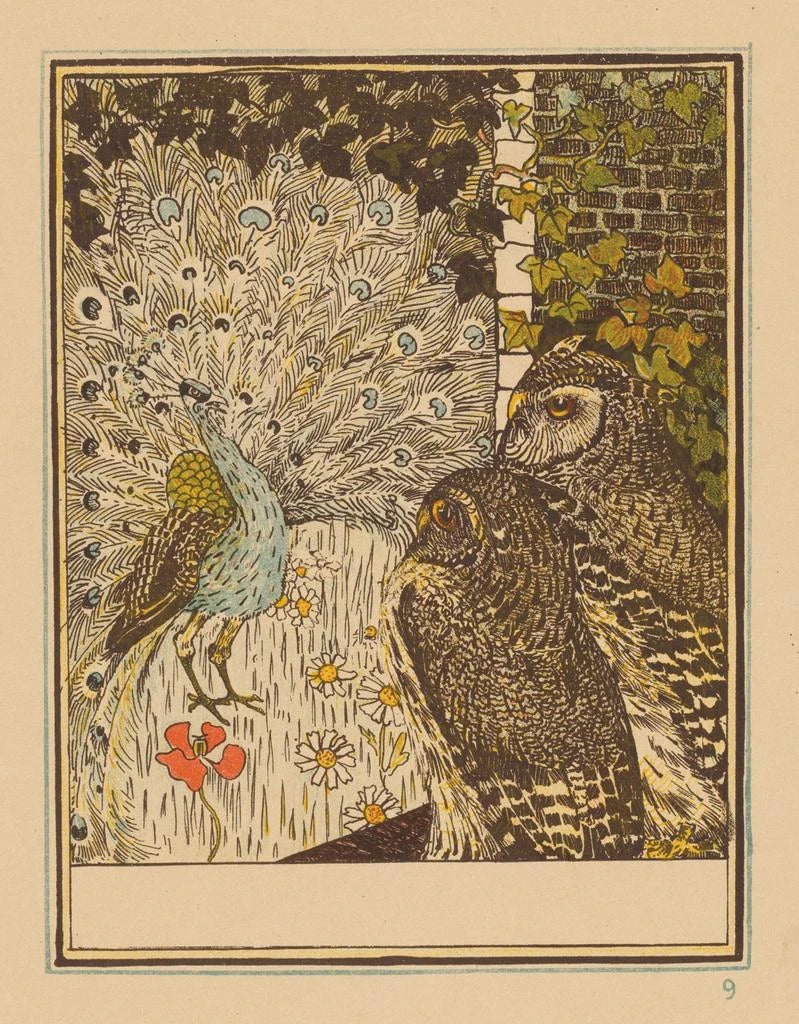 Montrant un paon et deux hiboux - Theo van Hoytema