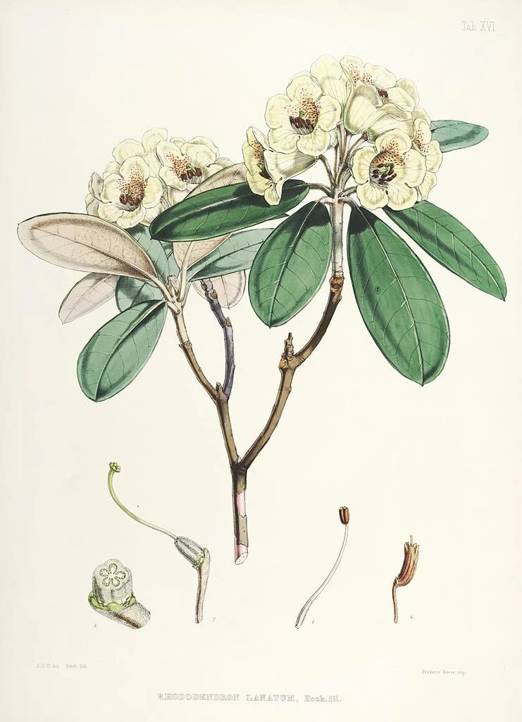 Walter Hood Fitch, a 19th-century British botanist and illustrator, is renowned for his invaluable contribution to botanical art. Trained at the school of fine arts, he skillfully combined scientific precision with artistic sensitivity. Fitch collaborated with many botanists of his time, allowing him to explore a wide range of exotic plants, especially those from Himalayan regions. His work not only enriched botanical knowledge but also influenced the aesthetic of floral art. The Rhododendrons of Sikkim Himalaya perfectly illustrate his unique style, blending scientific rigor with visual beauty.