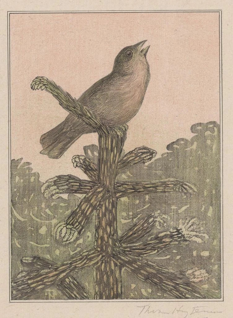 Oiseau chanteur sur un conifère - Theo van Hoytema