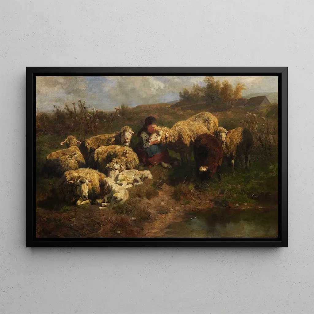 Petite shepherdess with sheep: a bucolic scene filled with tenderness In "Petite shepherdess with sheep," Anton Braith immerses us in a pastoral universe where serenity reigns supreme. The carefully orchestrated composition highlights a young shepherdess surrounded by her sheep, capturing the simple beauty of rural life. The soft, natural colors, ranging from calming greens to warm browns, create an atmosphere of tranquility. Braith's technique, blending realism and impressionism, brings every detail to life, from the delicate features of the shepherdess's face to the textures of the sheep's wool. This art print invites contemplation and escapism to idyllic landscapes. Anton Braith: a master of pastoral realism Anton Braith, a German painter of the 19th century, is renowned for his depictions of rural life and animals. Influenced by the Romantic movement, he captured the harmony between man and nature. His career spanned several decades, during which he produced numerous works celebrating the beauty of landscapes and scenes of everyday life. "Petite shepherdess with sheep" is part of a period when the artist sought to express the simplicity and purity of countryside life. His paintings, often tinged with nostalgia, testify to an era when nature was at the heart of artistic concerns. A decorative acquisition with multiple assets Choosing the art print of "Petite shepherdess with sheep" is a wise choice to enhance your interior. Whether in a living room, office, or bedroom, this piece adds a touch of softness and serenity. Its reproduction quality guarantees fidelity to the colors and details of the original work, while offering undeniable aesthetic appeal. By integrating this canvas into your decor, you invite a piece of nature and tranquility into your home, creating a calming and inspiring space for all your moments of life.